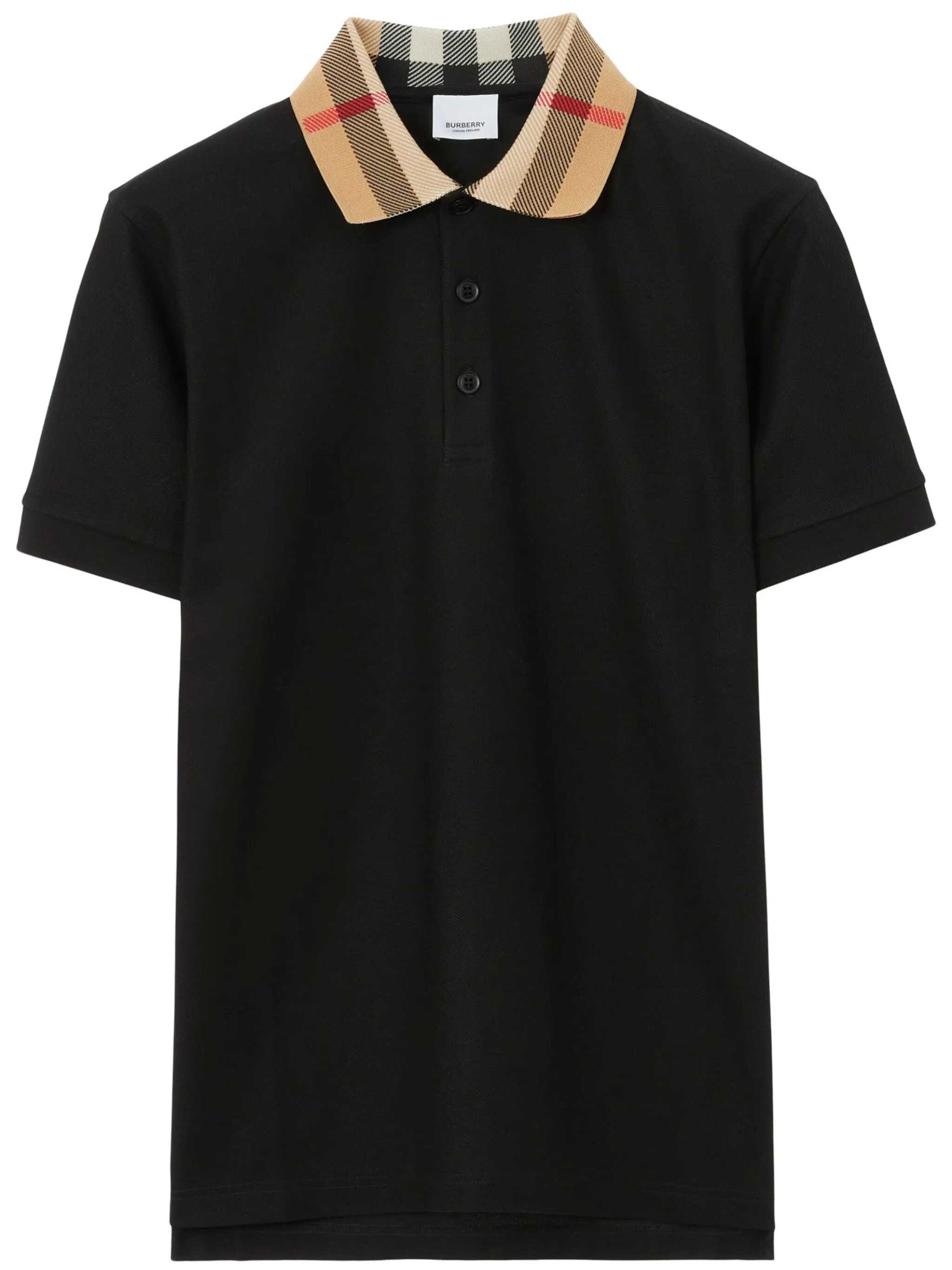 'Cody' piquet cotton polo shirt with contrasting check print collar, and short sleeves