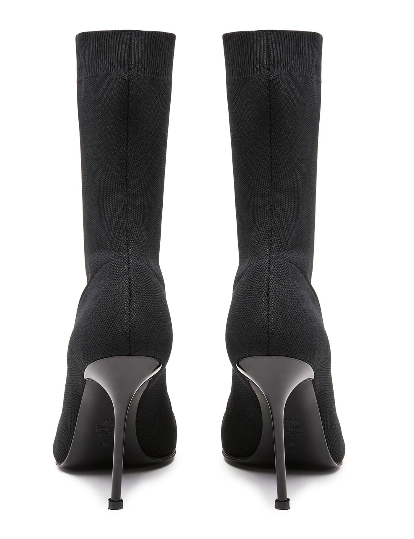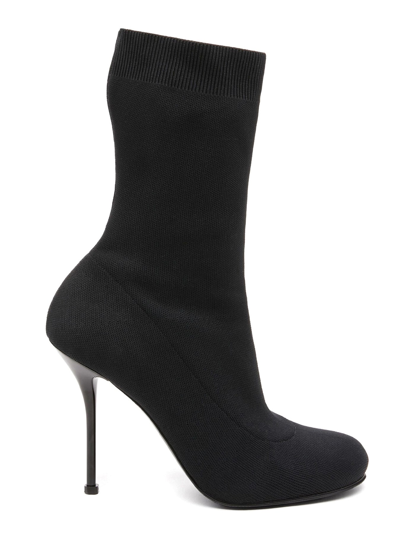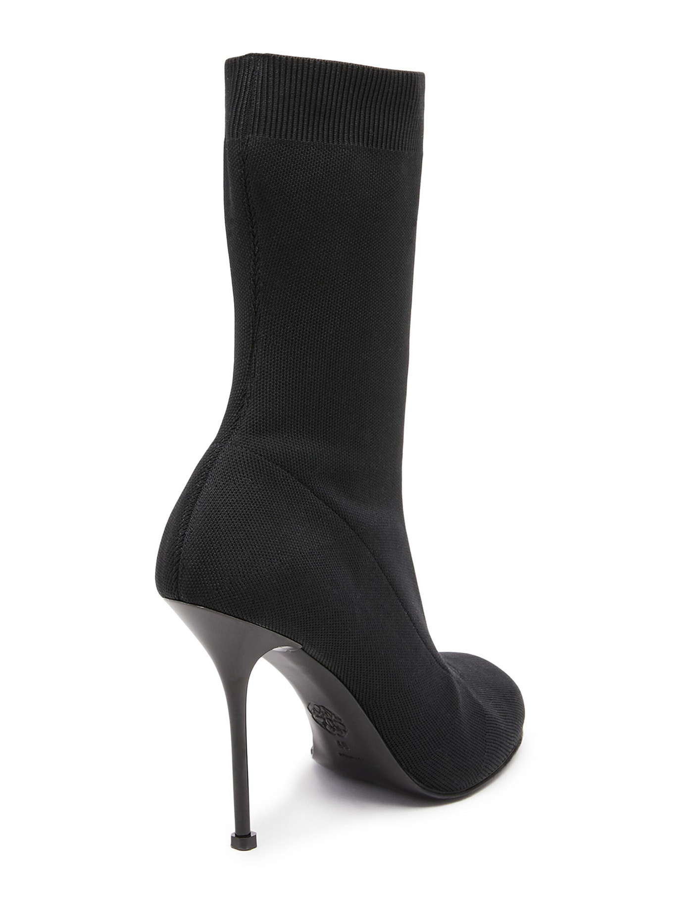Alexander McQueen stretch knitted ankle boots with ribbed trim, lacquared heel, leather insole and leather sole with rubber inlay.