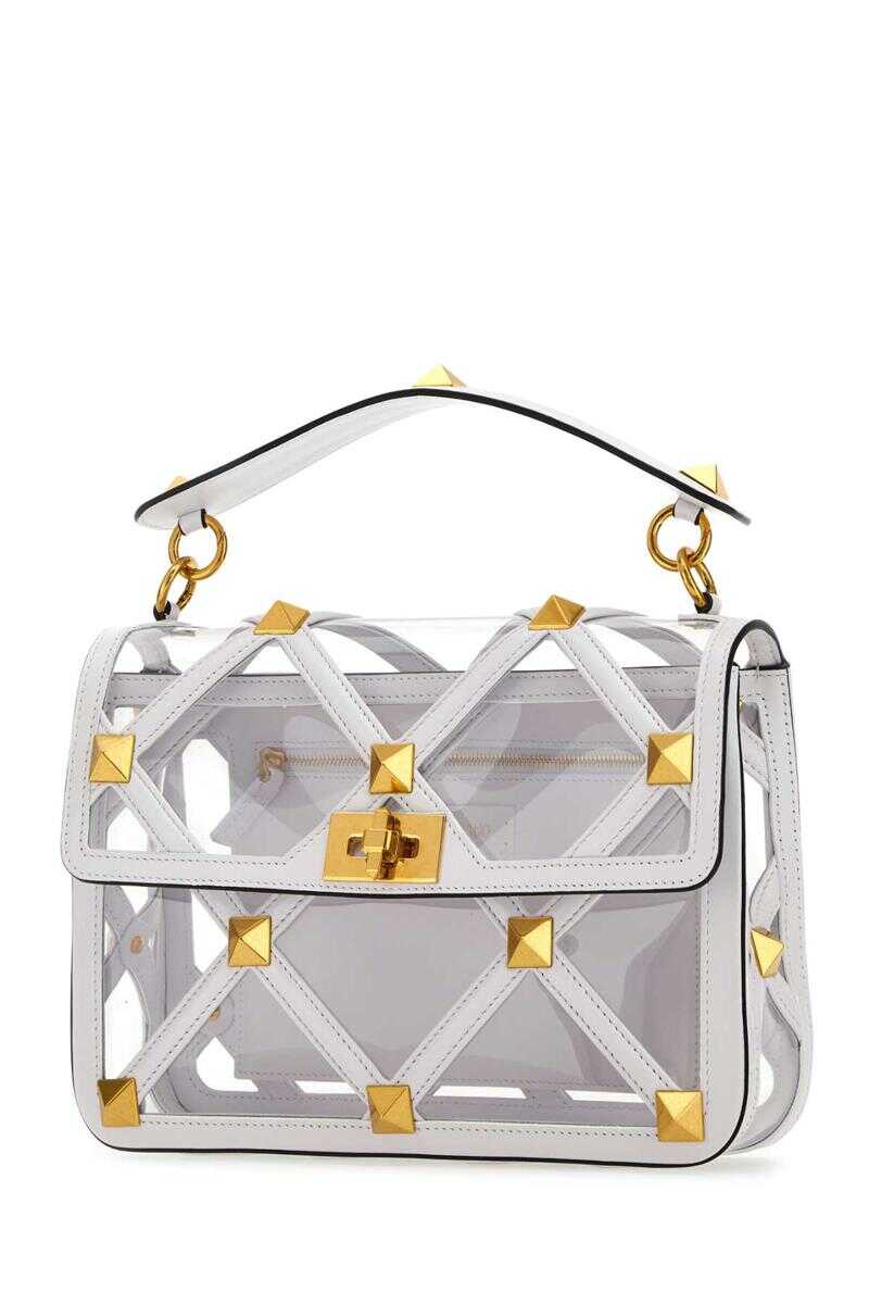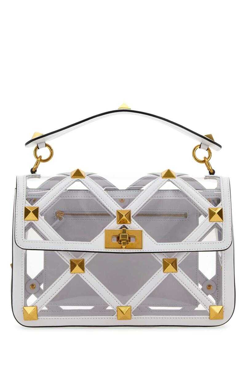 White polymeric material and leather large Roman Stud handbag Width: 28 cm Height: 18 cm Depth: 8 cm Handle height: 7 cm Max shoulder strap length: 50 cm