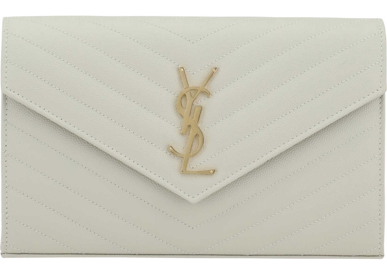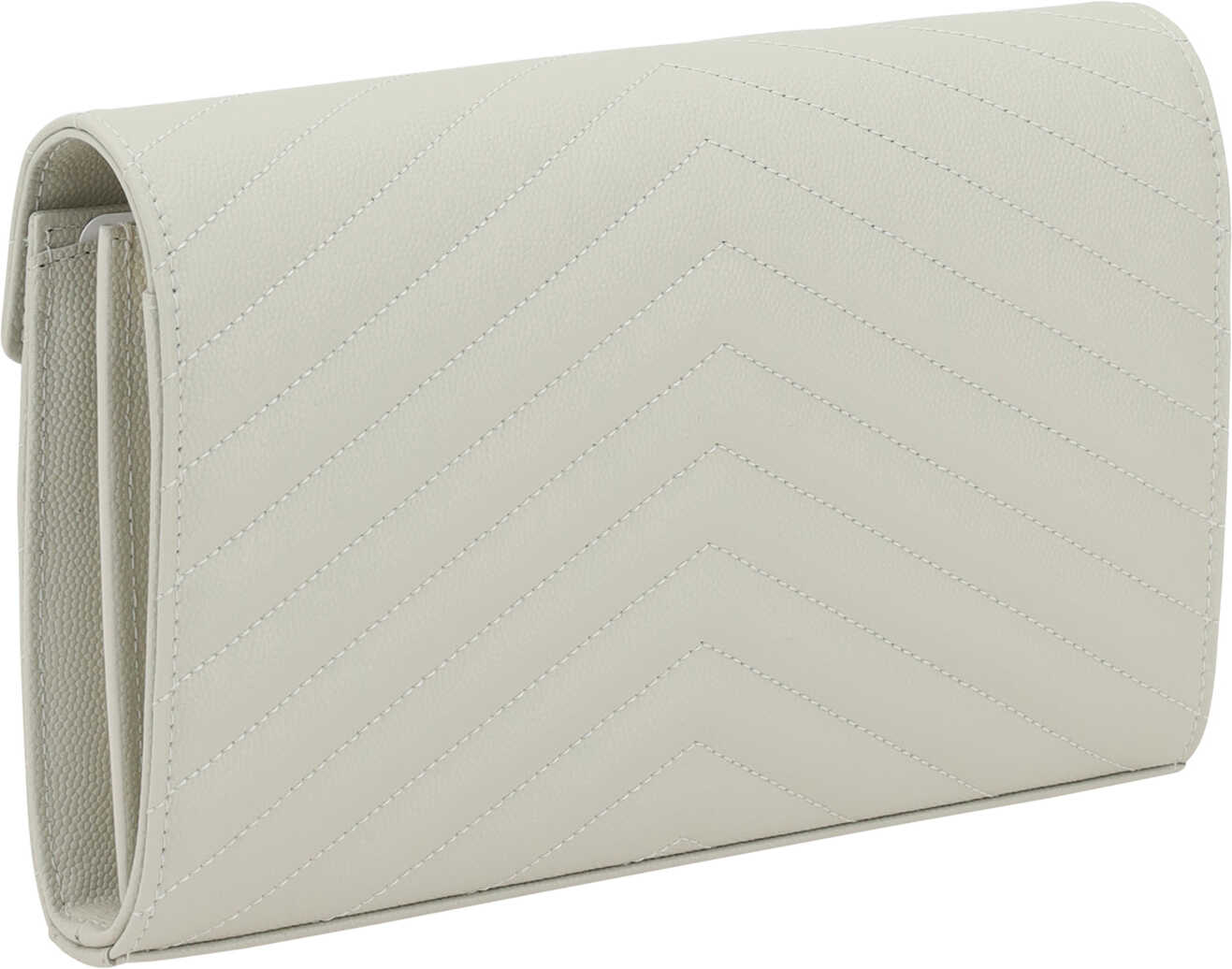 The Monogram leather Shoulder Bag by Saint Laurent features a front snap-button closure for convenience and security. The leather design is enhanced by the matelassé print, which adds a sleek and sophisticated texture. Inside, it features card slots, a central zippered pocket and visible brand logo. On the front, there is a plaque with the iconic golden logo. The golden chain shoulder strap with leather handle lends a touch of luxury, making this bag ideal for any elegant occasion.