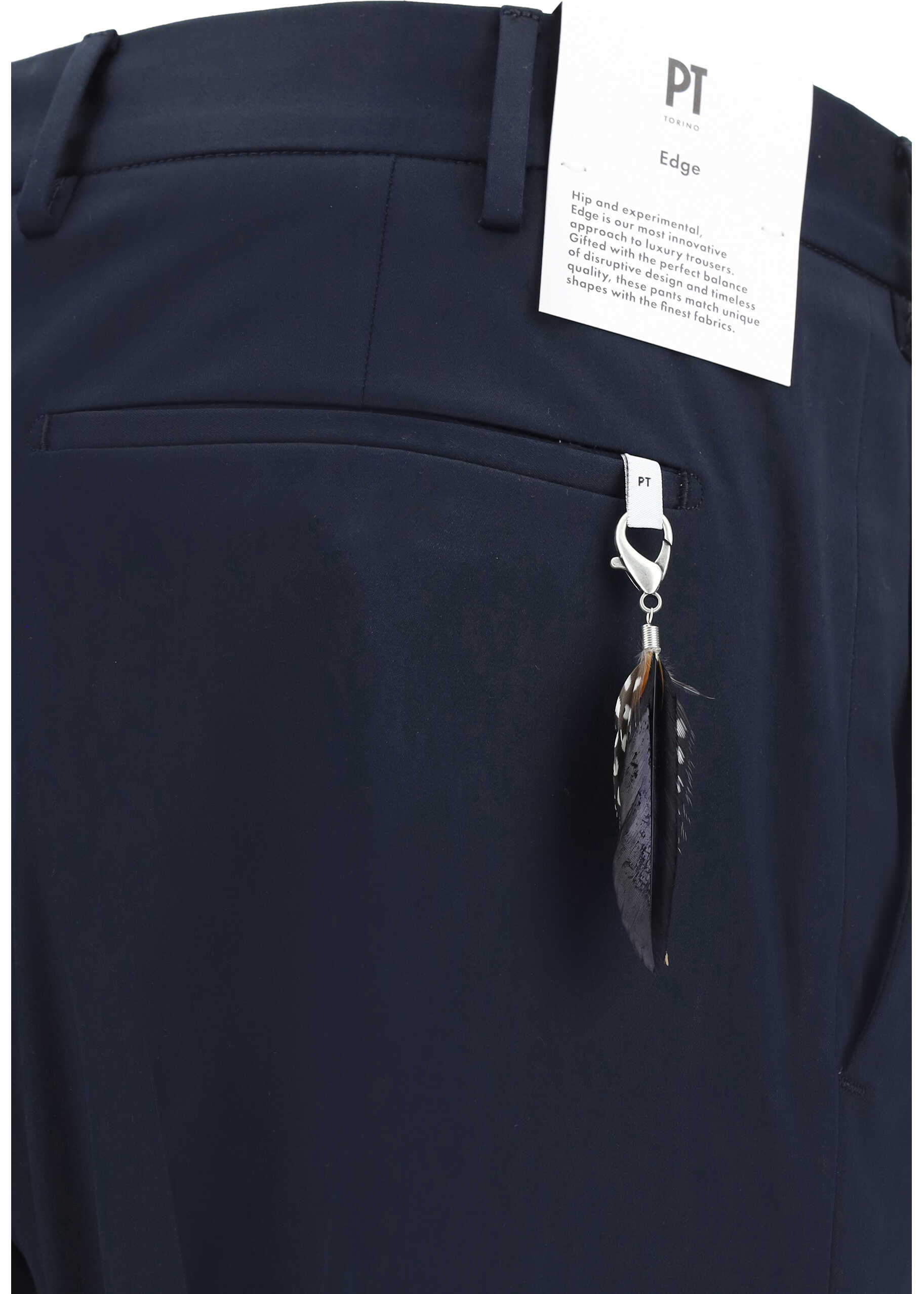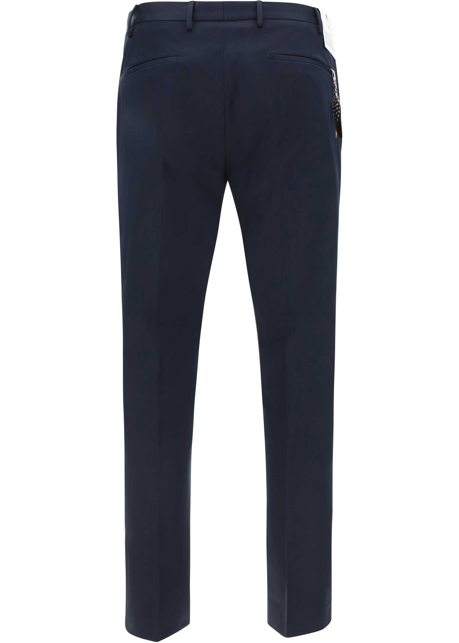The Cotton Pants by PT Torino combine elegance and practicality with a detail-oriented design. The front closure with hidden hooks and zipper gives a clean, sophisticated look, while the two side slash pockets offer a classic, functional touch. Back welt pockets, enhanced by a removable feather detail applied to one of them, add a distinctive and unique accent. Belt loops on the waistband allow you to customize the fit, while the regular fit ensures comfort and a modern silhouette.