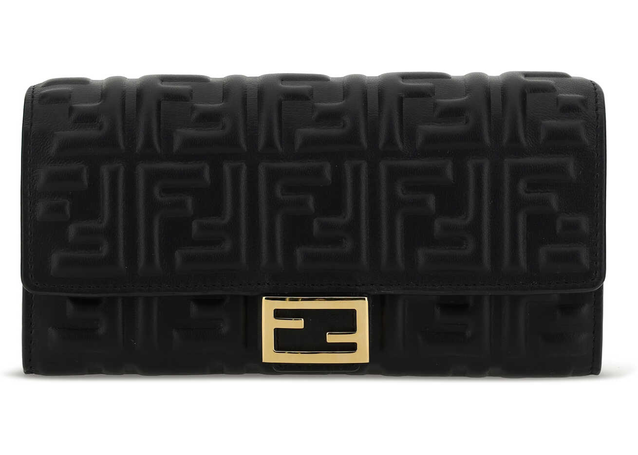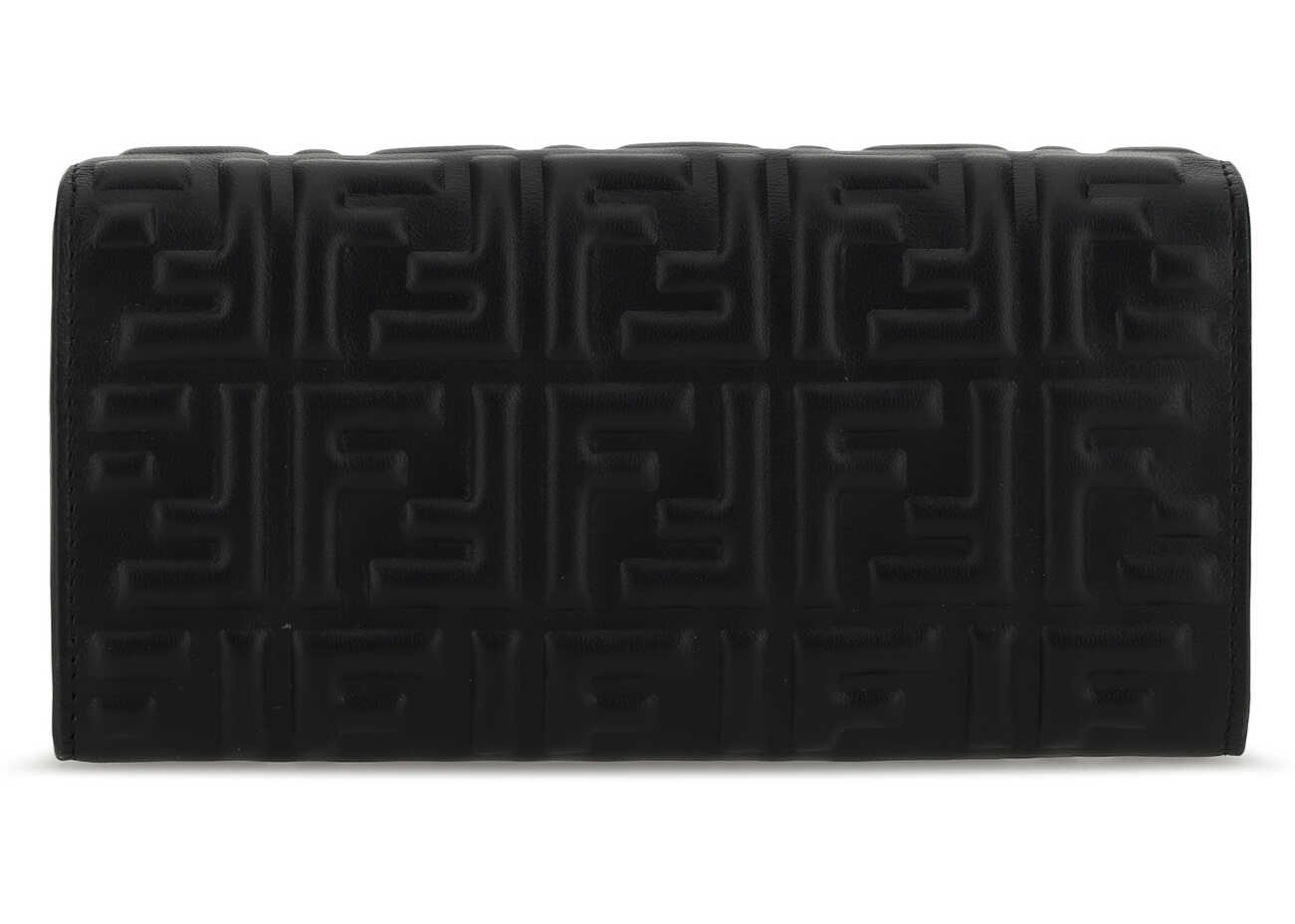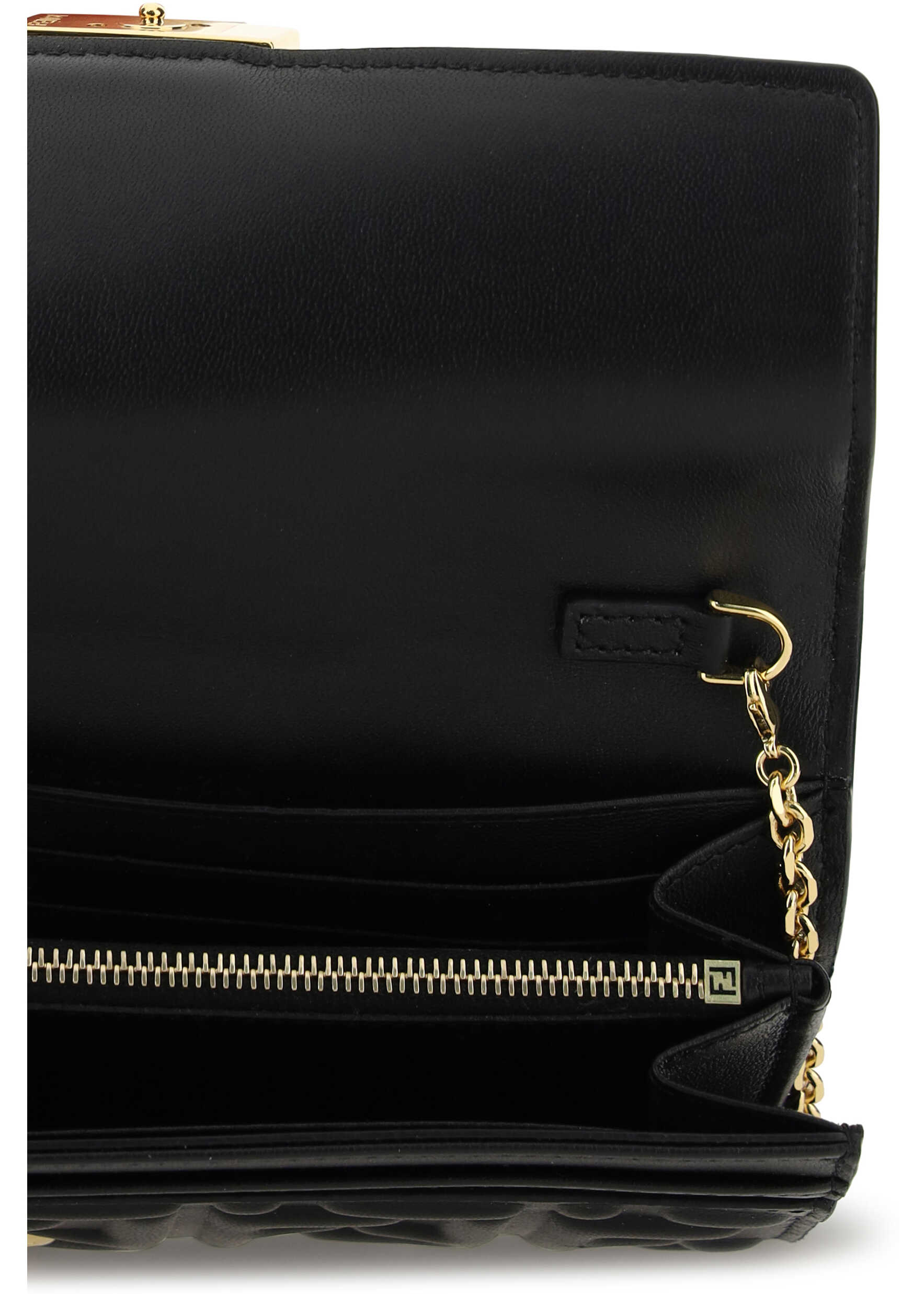 Lambskin chain Wallet by Fendi features a magnetic closure and monogrammed plaque. The fabric is embellished with an embossed FF logo, while the interior offers card slots, bill compartments and a zippered coin pouch. Complemented by a removable chain shoulder strap for the perfect combination of style and functionality.
