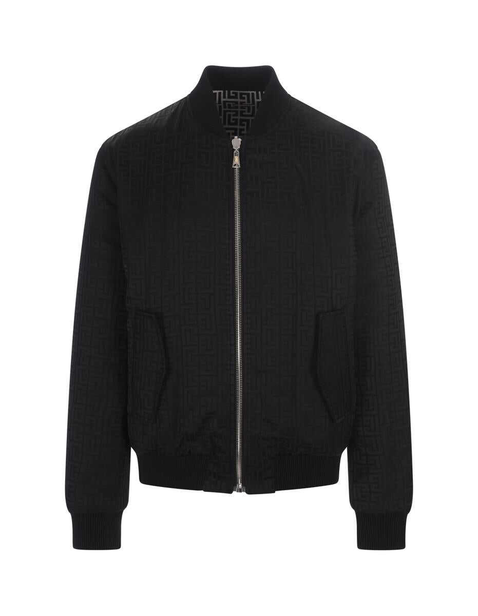 Balmain reversible cotton bomber with monogram jacheta barbati neagra