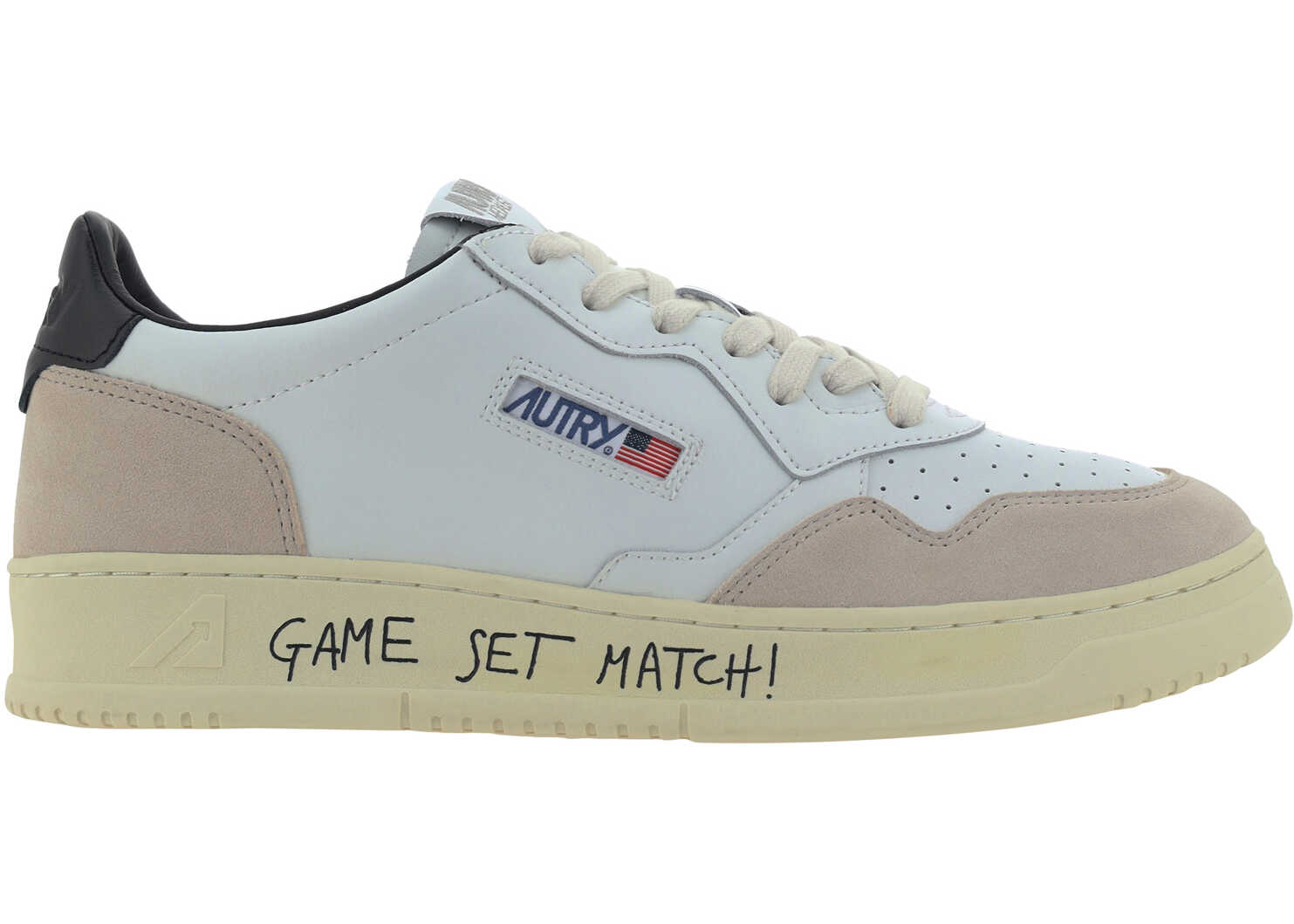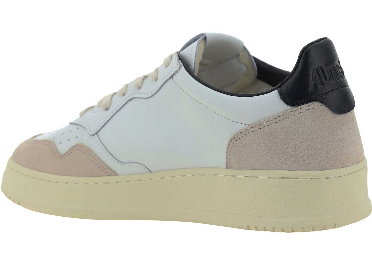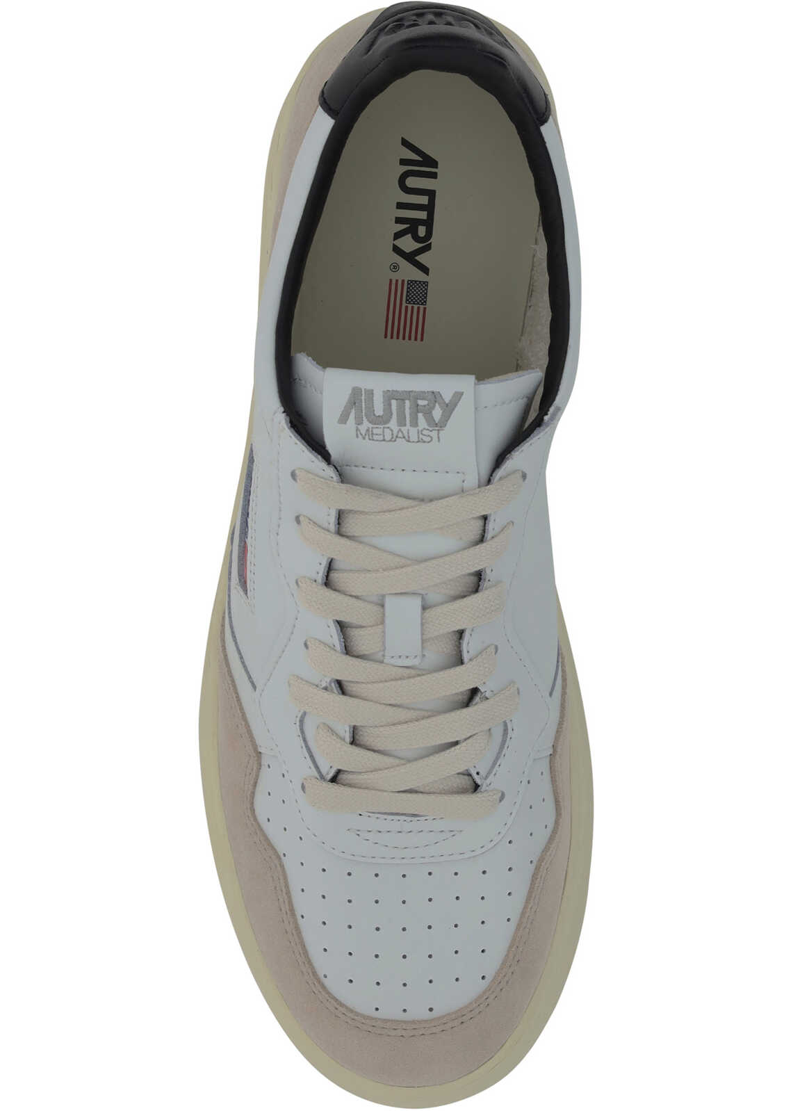 Calfskin Medalist Low Sneakers by Autry, perforated round toe, lace-up front closure, logo-embossed front tab with patch, iconic contrasting back heel with embossed logo, contrasting brand monogram on outer side panel.