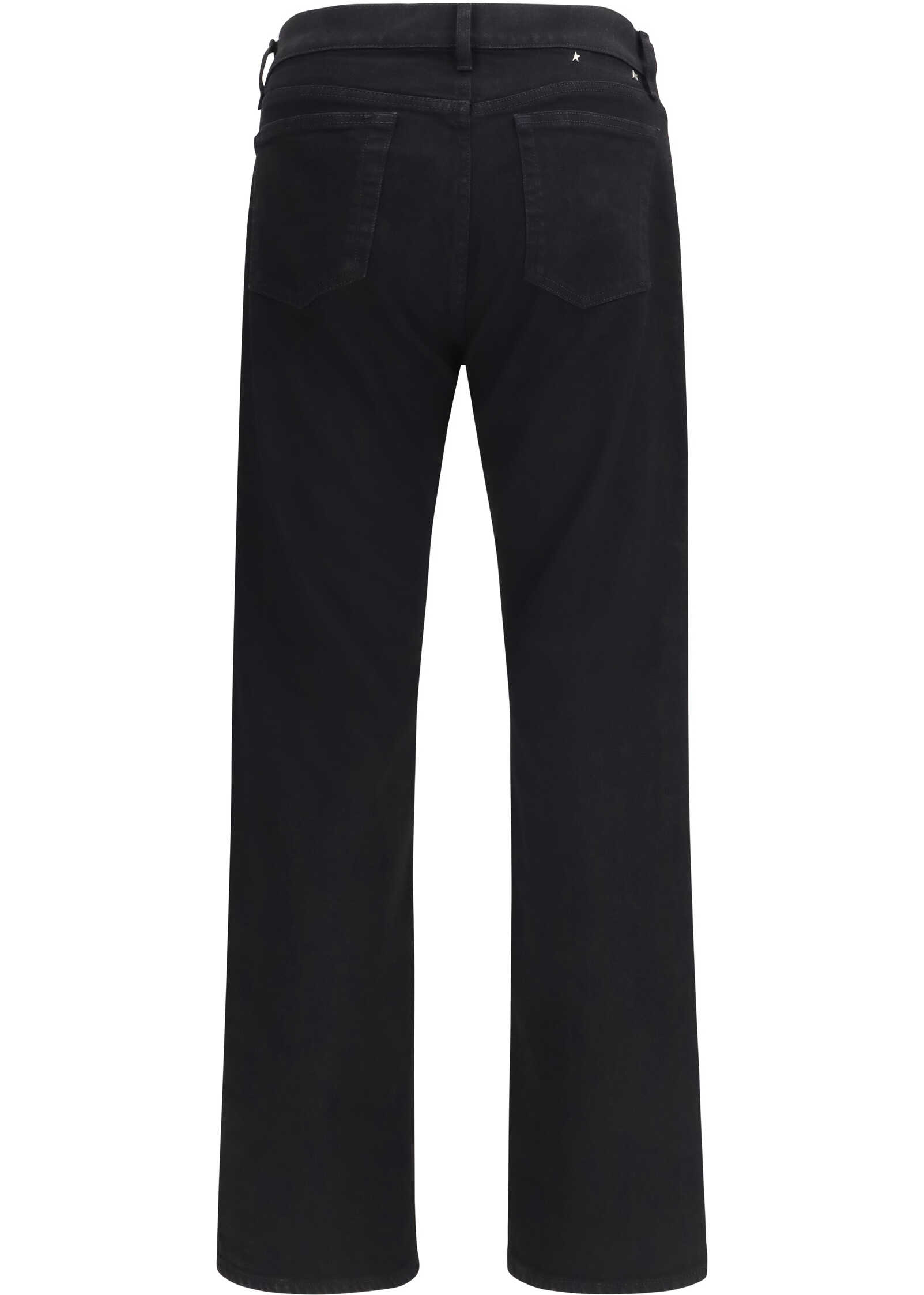 The Journey Collection Jeans by Golden Goose deliver a clean and contemporary take on essential denim. Crafted from slightly stretchy fabric, they feature a slim silhouette designed to naturally follow the line of the leg. A classic five-pocket construction is paired with a mid-rise waist and a molded structure, while a front zip and logo button closure complete the design. The double star applique on the back adds an iconic signature, preserving a refined and versatile aesthetic.