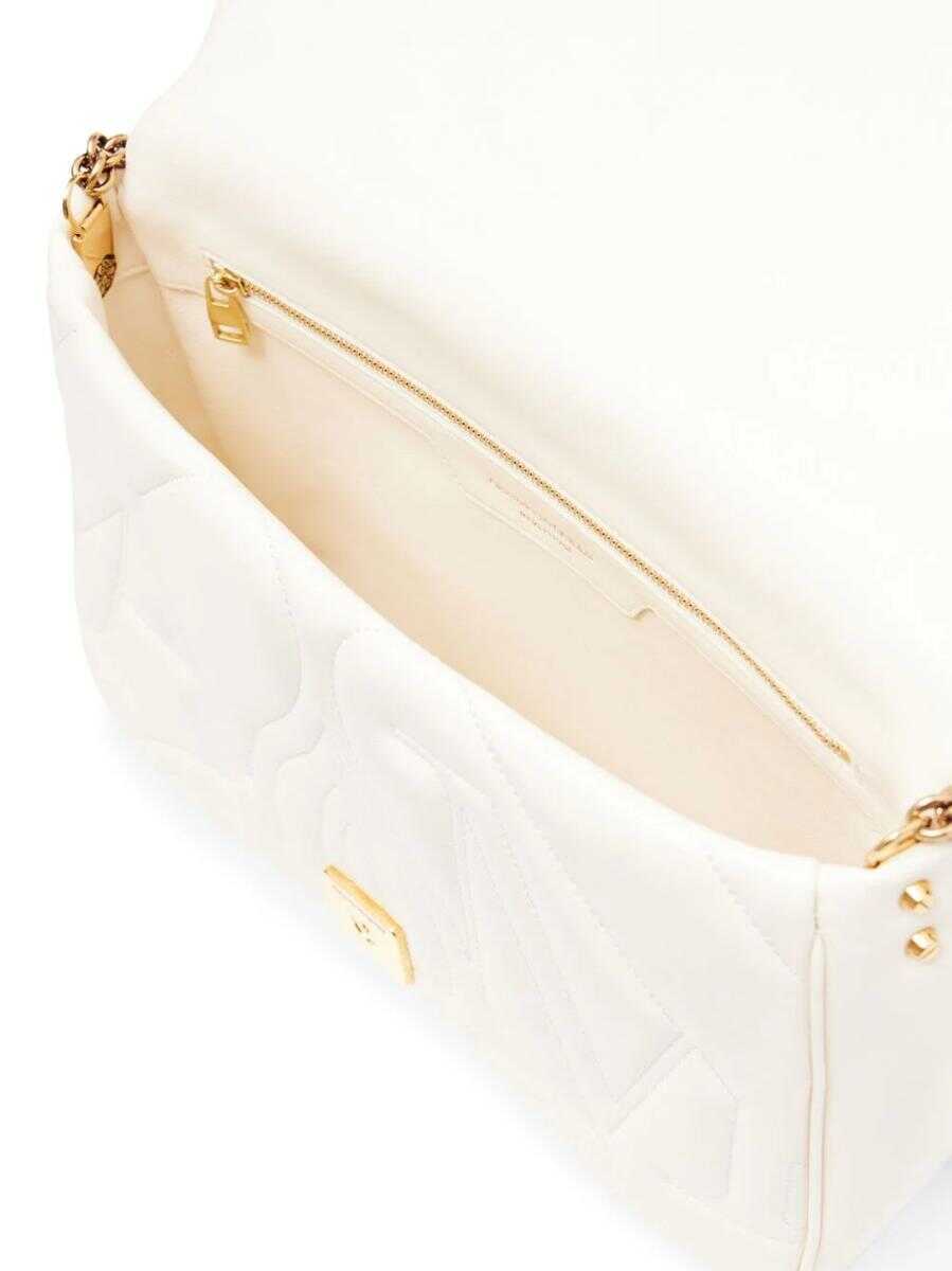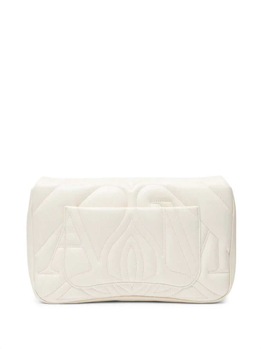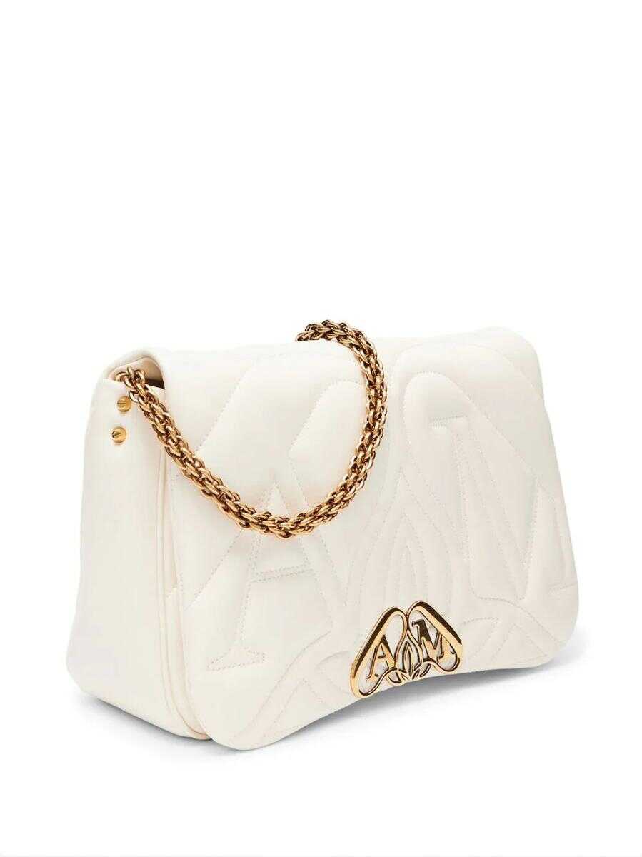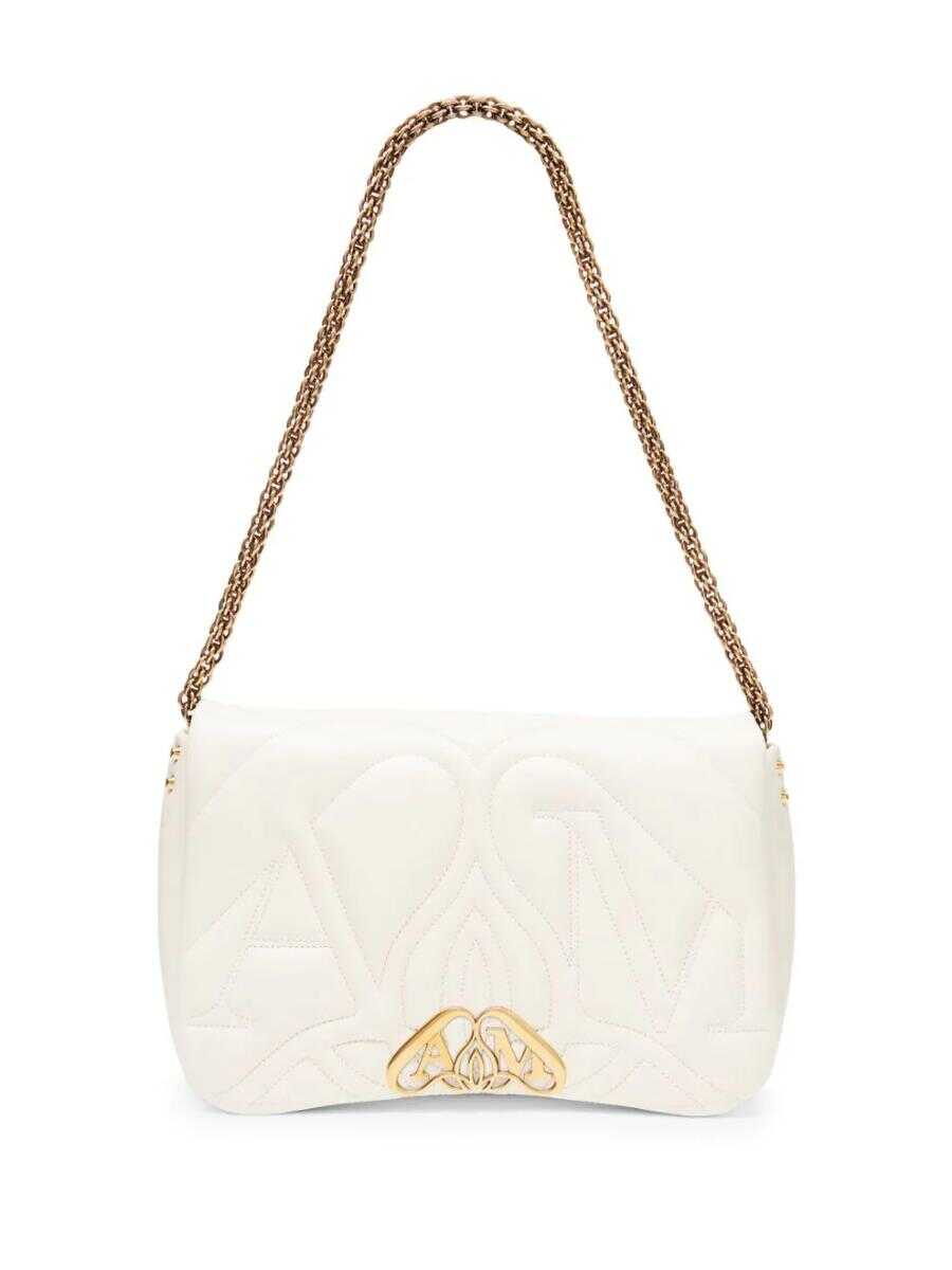 The Seal quilted shoulder bag from Alexander McQueen featuring ivory white, lambskin, quilted, gold-tone hardware, gold-tone logo plaque, foldover top with press-stud fastening, chain-link shoulder strap and internal zip-fastening pocket. DEPTH: 12.0 Centimetres HEIGHT: 19.0 Centimetres STRAP: 72.0 Centimetres WIDTH: 31.0 Centimetres