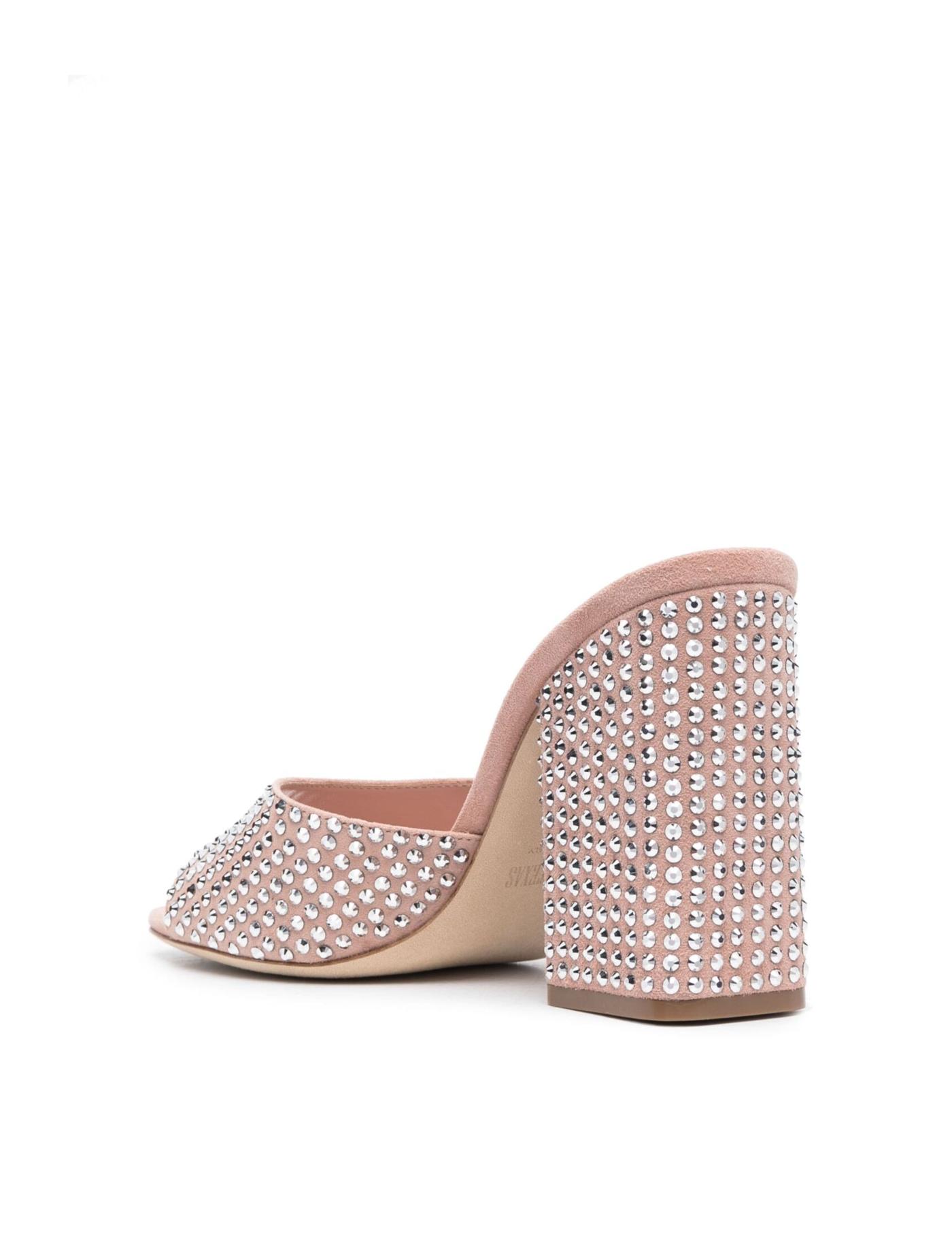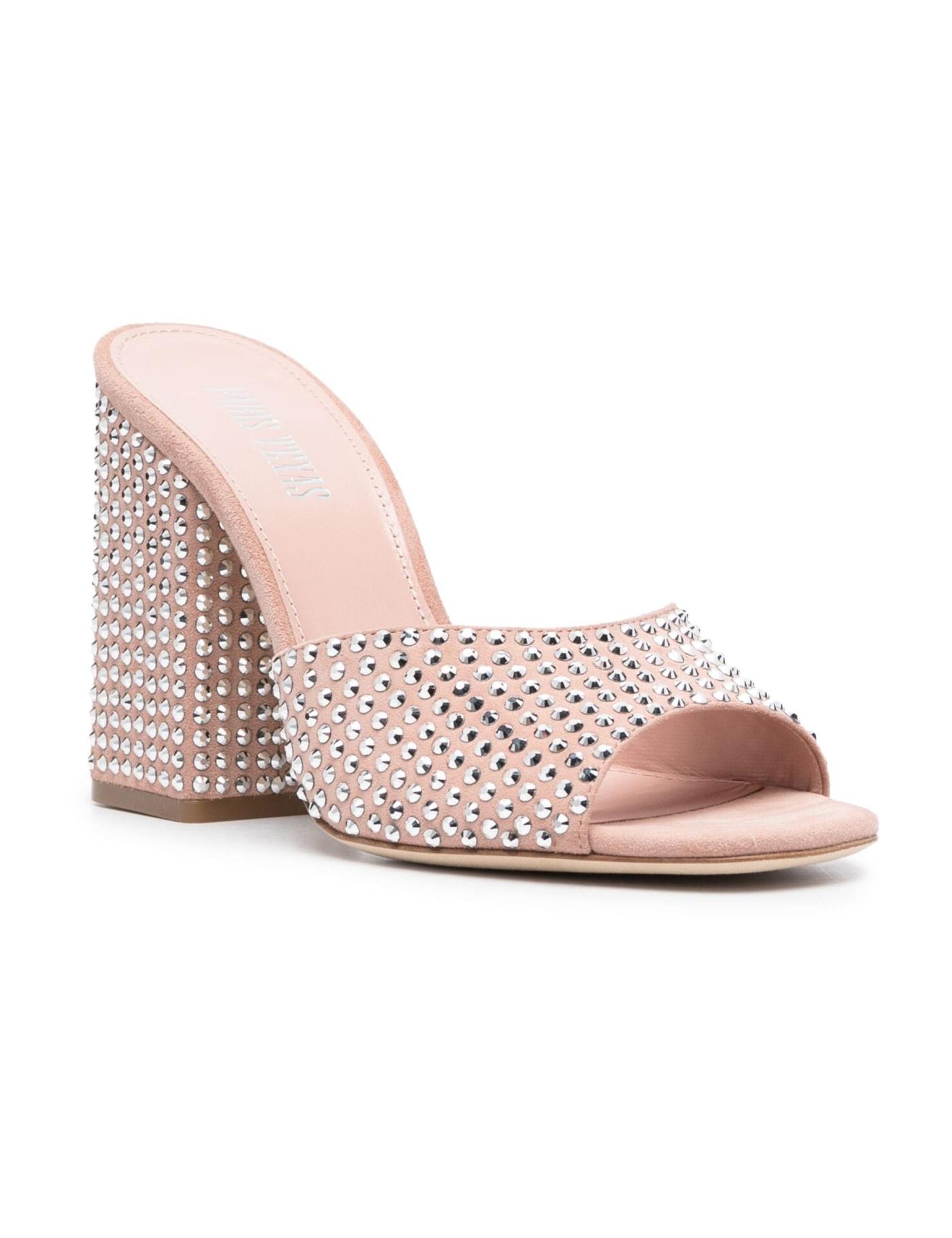 Paris Texas blends timeless silhouettes with intriguing details for an elevated look, as seen with these pink-hued mules. The pair is embellished with glimmering crystals and sits atop a statement 105mm block heel.