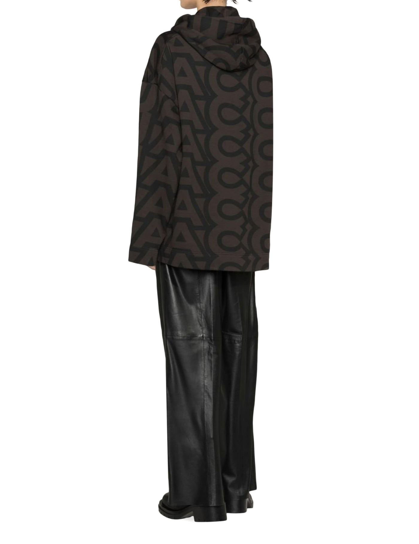The Monogram Oversized hoodie by Marc Jacobs made in cotton with monogram print in charcoal and black tones. Adjustable hood with drawstring and kangaroo pocket on the front. Oversized fit, unisex item.
