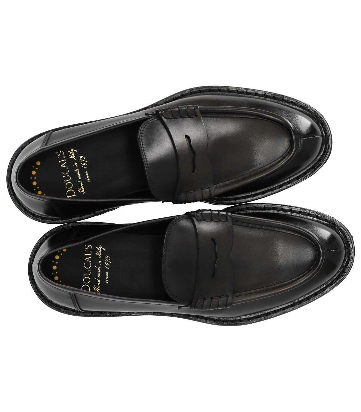 Doucal's Adler loafer made of graphite grey leather. Soft leather lining and insole, black rubber sole. Height 4 cm.