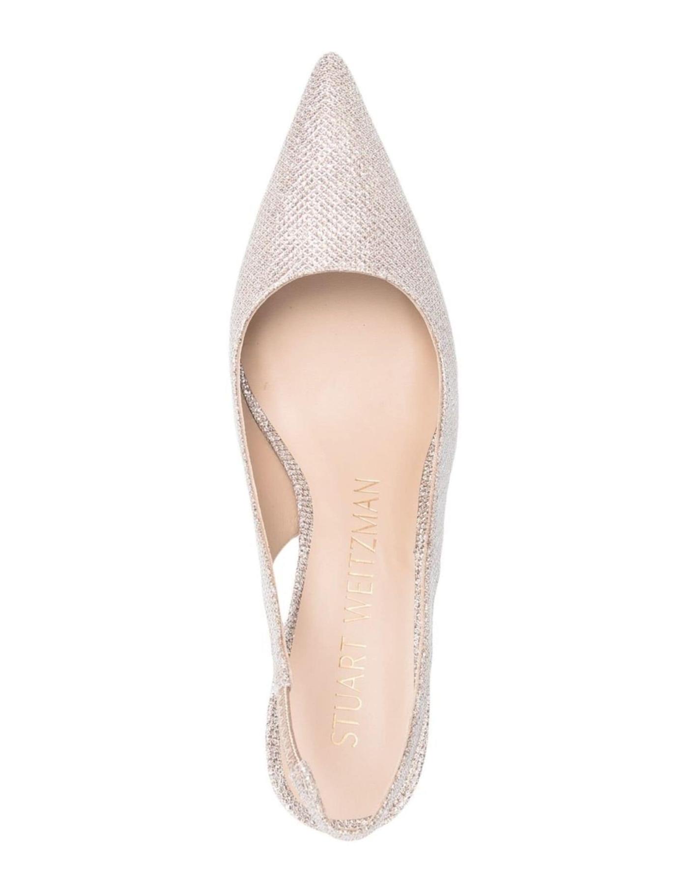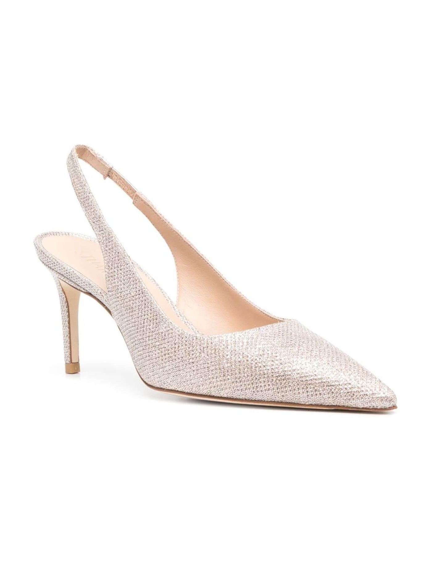 The minimalist silhouette of the Stuart pumps is elevated using Stuart Weitzman’s classic sophisticated touch. Presented in a metallic effect leather construction, the elegant design boasts an elasticated slingback strap for a better fit.