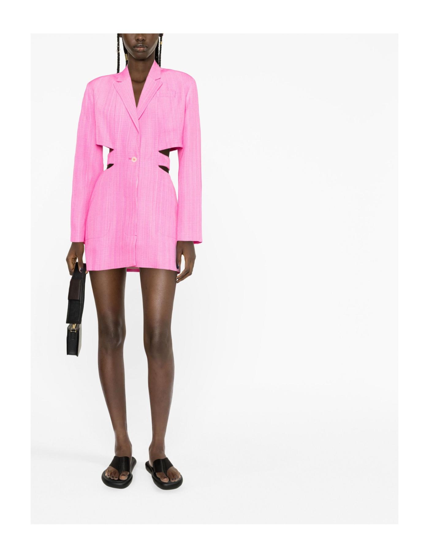 Crafted from a virgin wool blend in a bold pink colourway, this Bari blazer-style dress from Jacquemus is characterised by its fitted cut-out waistline.