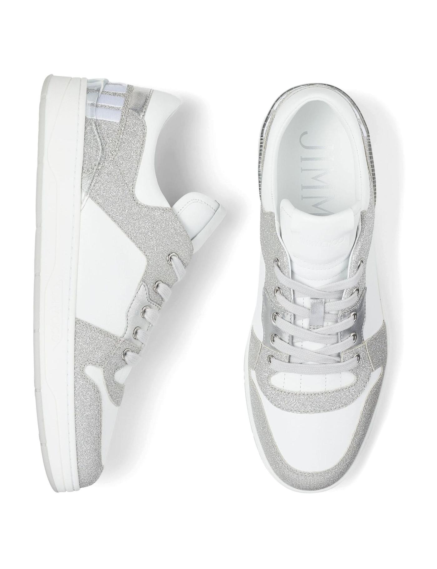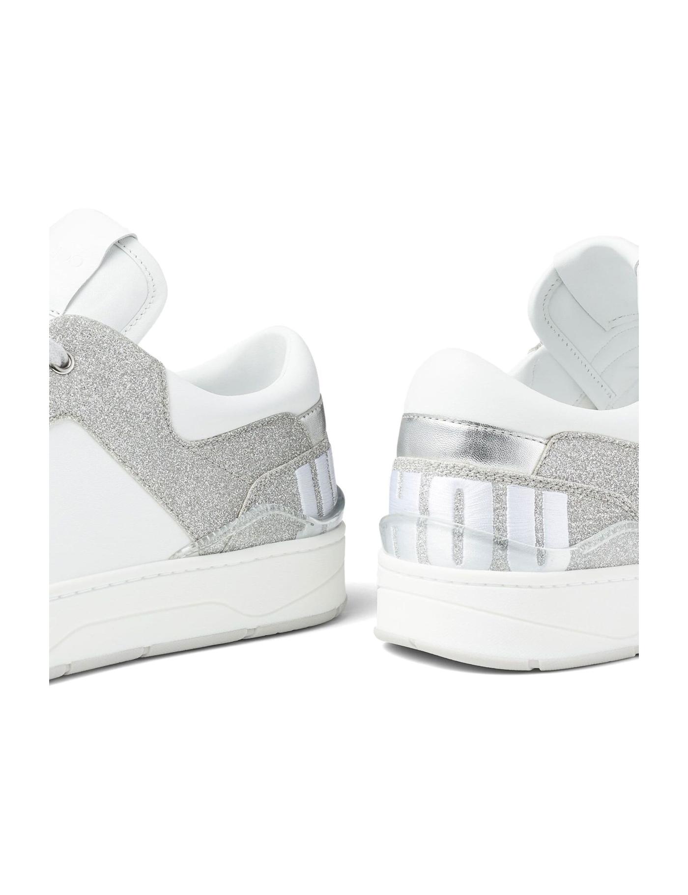 Jimmy Choo refreshes the Florent silhouette with this iteration for the AW23 collection. Made from leather, the pair features a basketball-inspired upper that combines a white background with contrasting mélange panels. At the back, a wide logo embroidery completes the look.