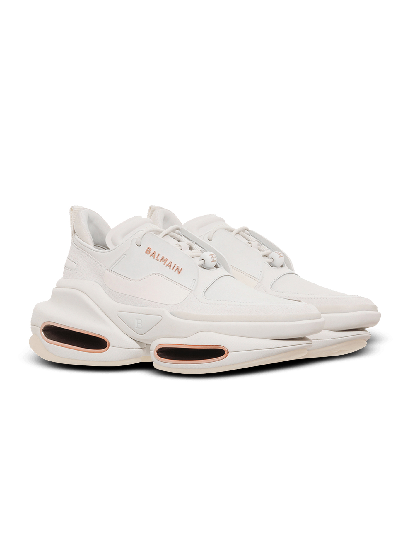 BALMAIN B-Bold low-top in Leather and neoprene sneakers dama albi