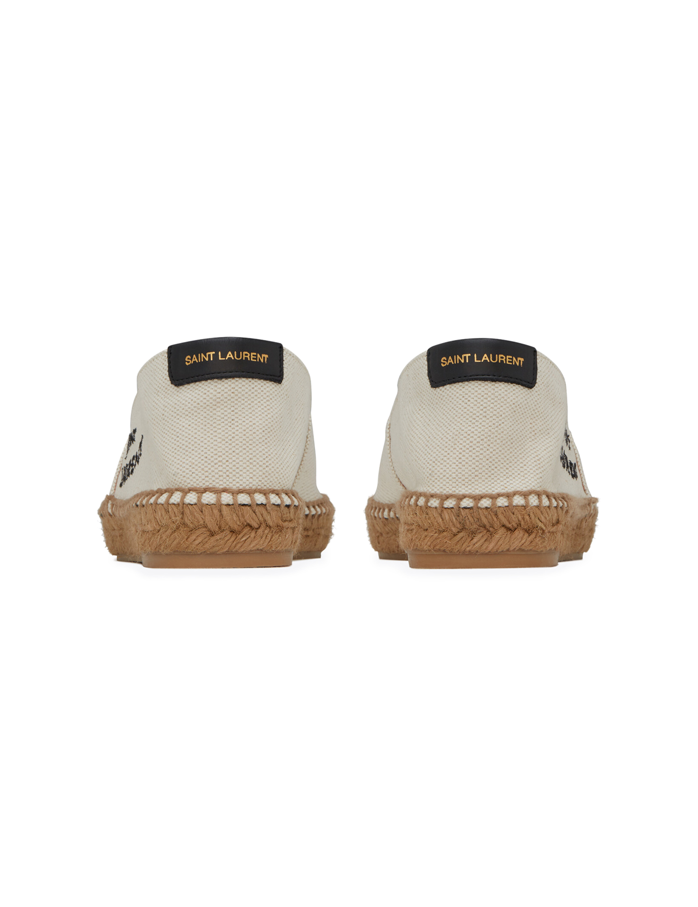 ESPADRILLES WITH JUTE MIDSOLE AND INSOLE, DECORATED WITH CONTRASTING SAINT LAURENT EMBROIDERY ON THE SIDE AND A GOLD-TONE SAINT LAURENT PARIS INSCRIPTION ON THE LEATHER BACK TAB.