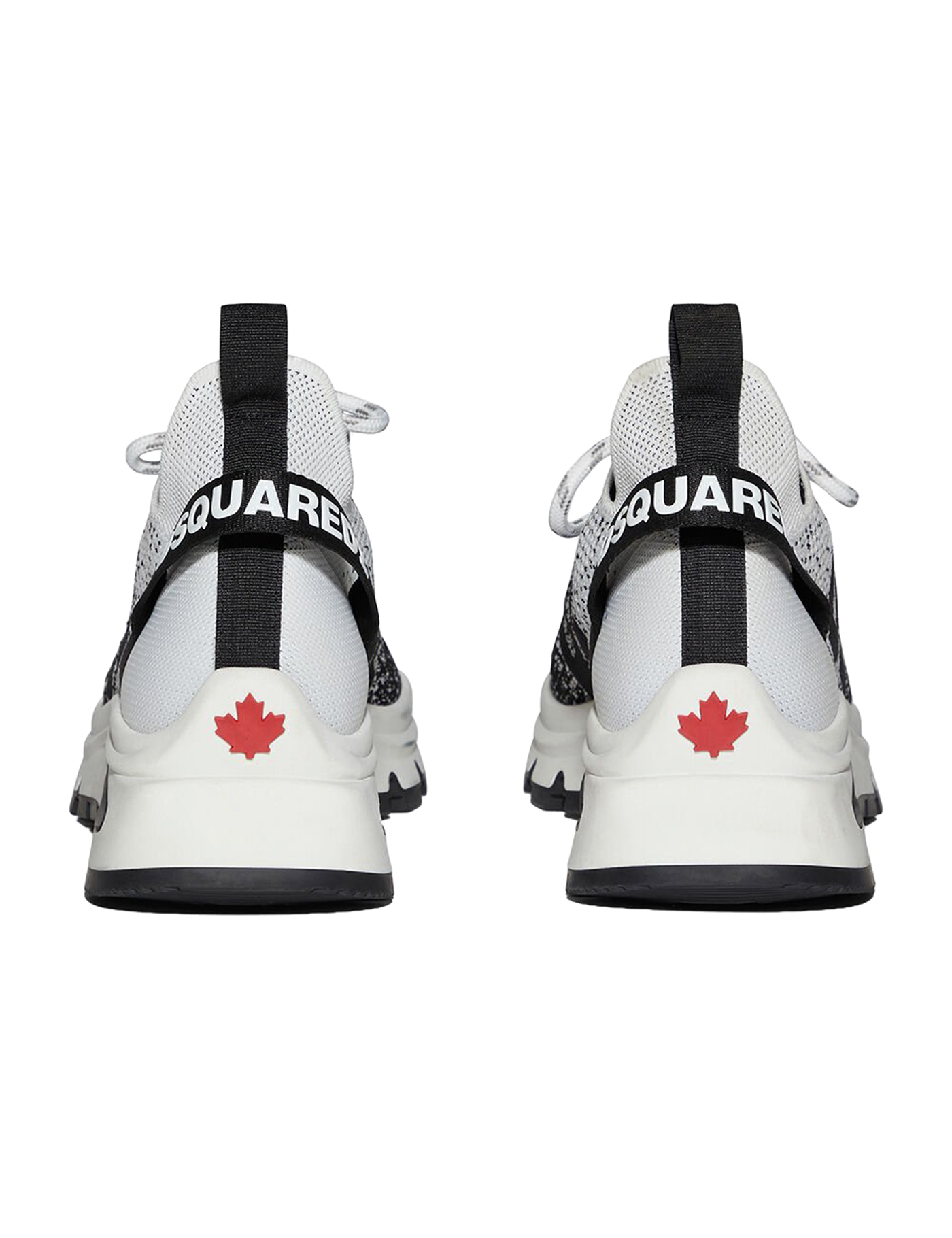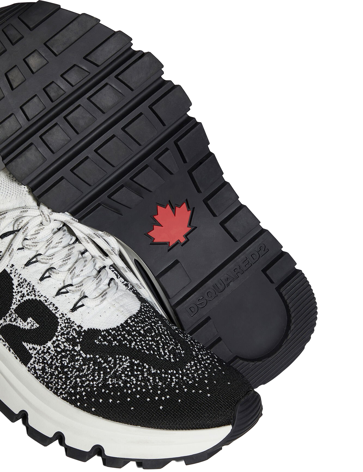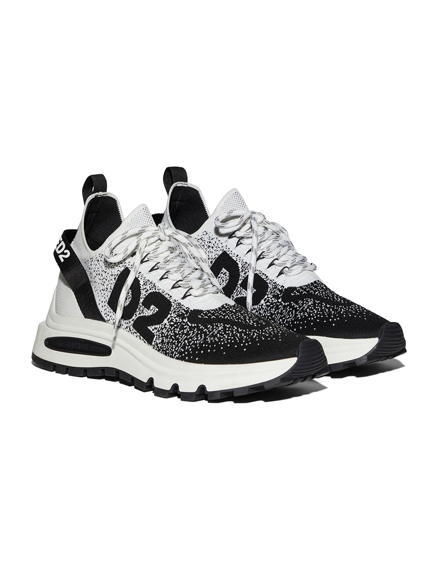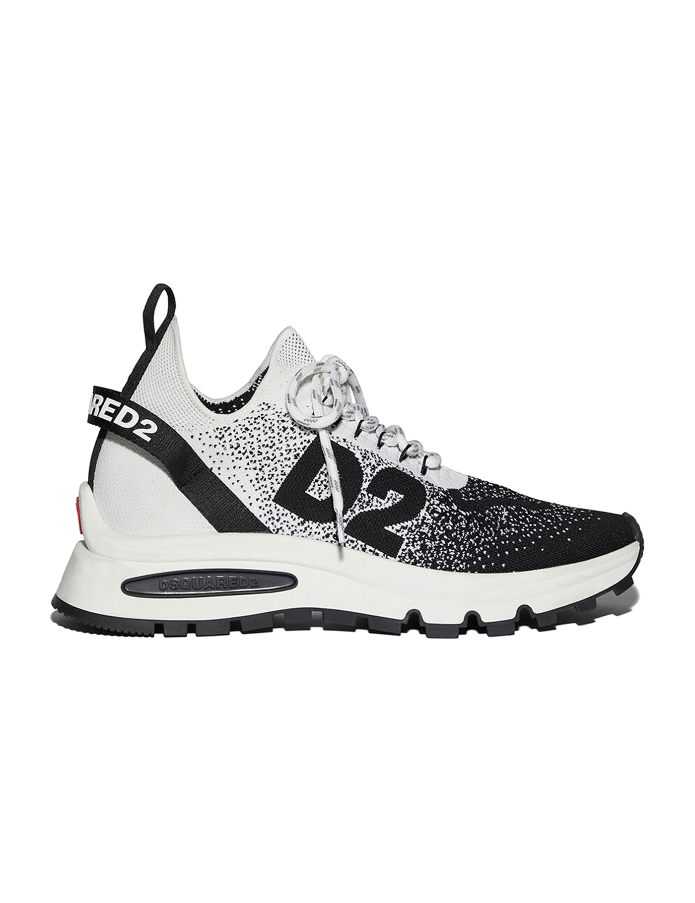 Knitted-upper low-top sneakers from DSQUARED2 featuring black/white, gradient effect, knitted upper, round toe, front lace-up fastening, pull-tab at the heel and ridged rubber sole.