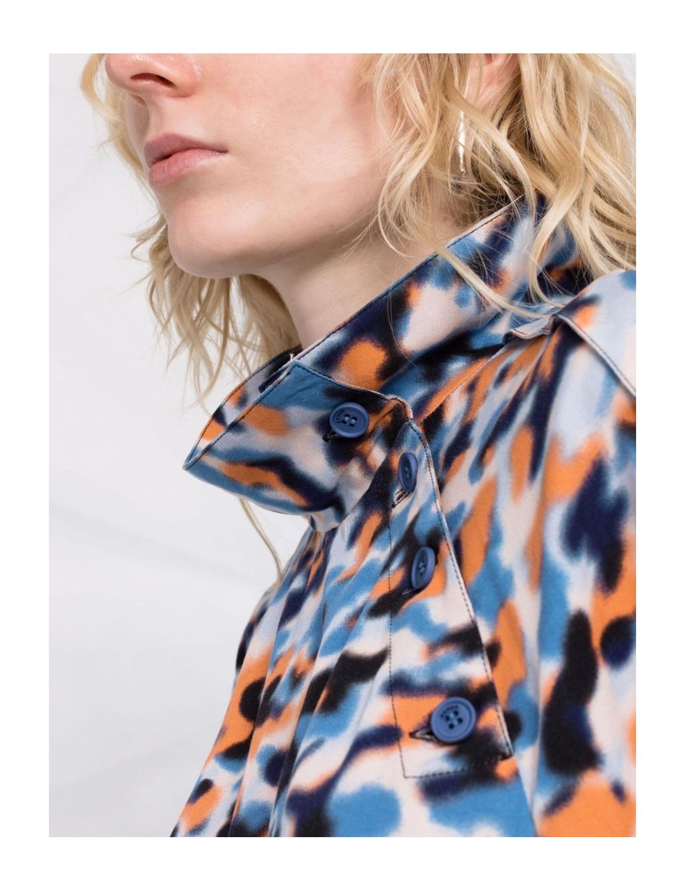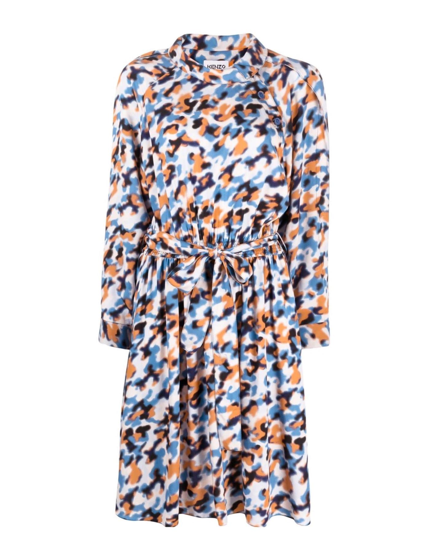 Built with an abstract pattern print, Kenzo's mid-length shirt dress is designed with a foldover collar and side button fastening. Forming part of the label's SS22 collection, it falls to a knee length and boasts an elasticated shirred waistband with a tie-fastening belt.