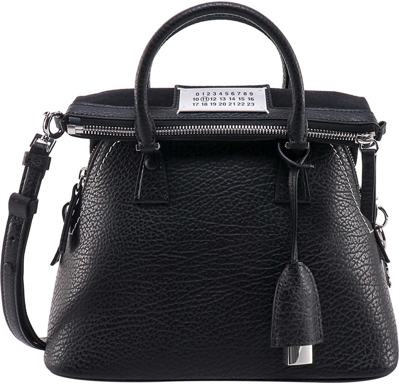 Leather handbag with with logo patch