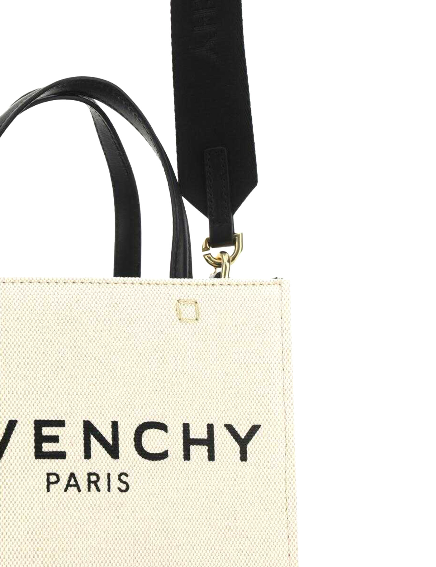 COTTON G-TOTE MINI HANDBAG FROM GIVENCHY, DOUBLE FLAT RIGID HANDLES IN CONTRASTING LEATHER, REMOVABLE AND ADJUSTABLE FLAT WEBING SHOULDER STRAP, ICONIC BRAND MONOGRAM PRINTED IN CONTRASTING COLOR ON THE FRONT, SINGLE INTERIOR COMPARTMENT, INTERIOR WELT POCKET, METAL FEET APPLIED AS A SUPPORT AT THE BASE OF THE BAG, LOGOED PRESS STUDS.