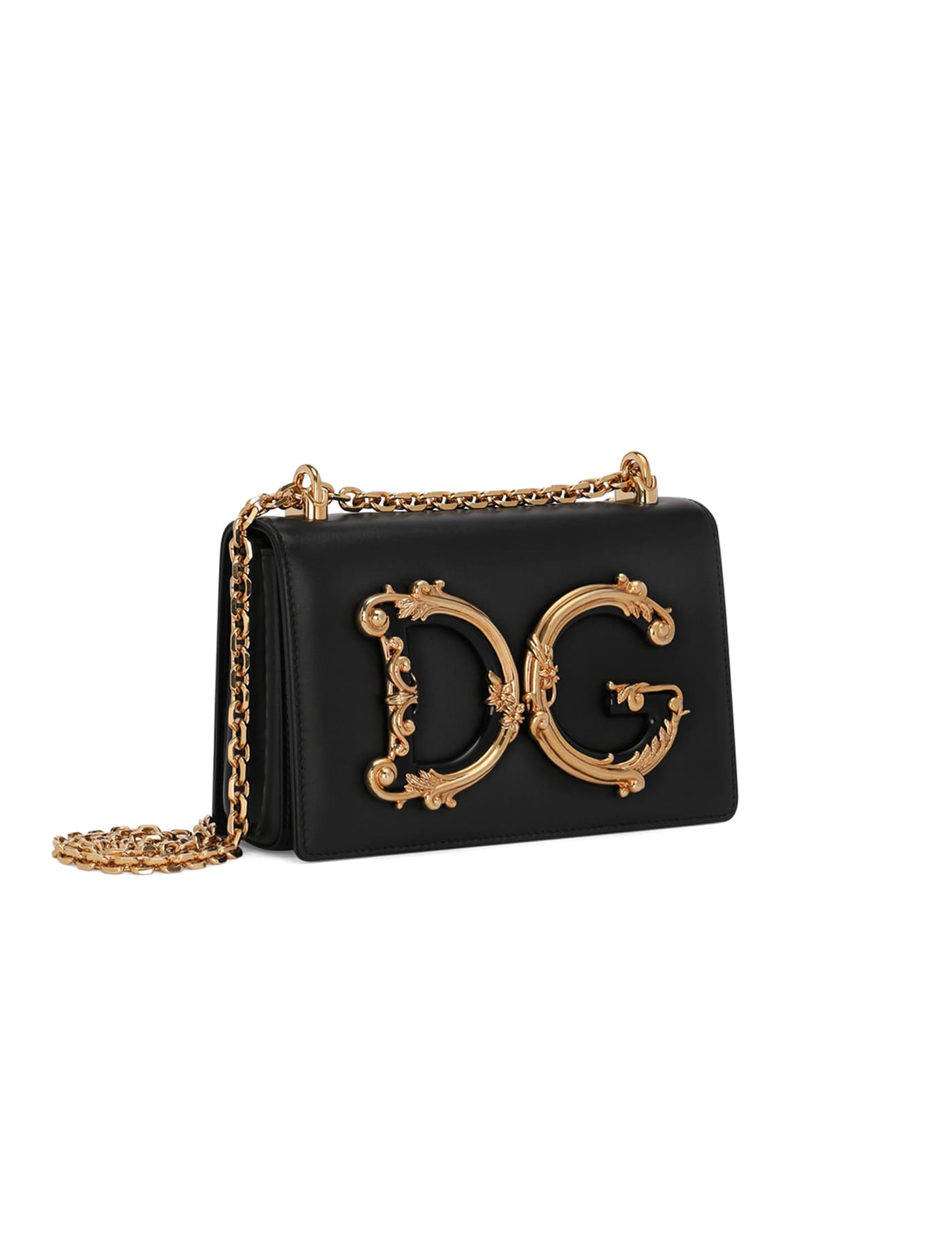'DG Girls' lambskin crossbody bag with logo and gold hardware, chain shoulder strap and flap closure