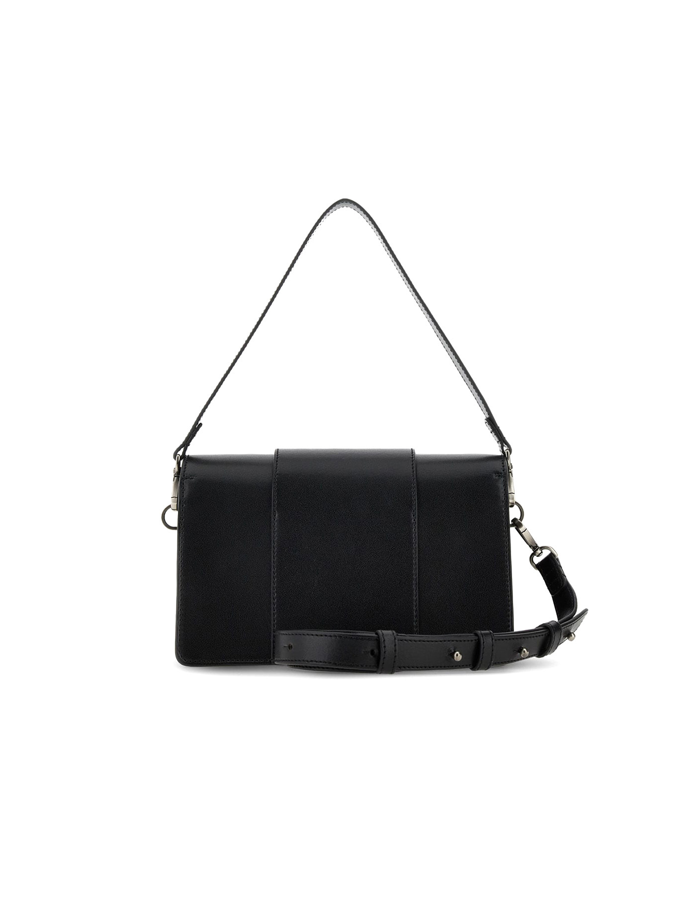 H-Bag leather shoulder bag from HOGAN featuring black, calf leather, signature H plaque, foldover top with magnetic fastening, single detachable top handle, adjustable detachable shoulder strap, partitioned compartment and internal pocket.