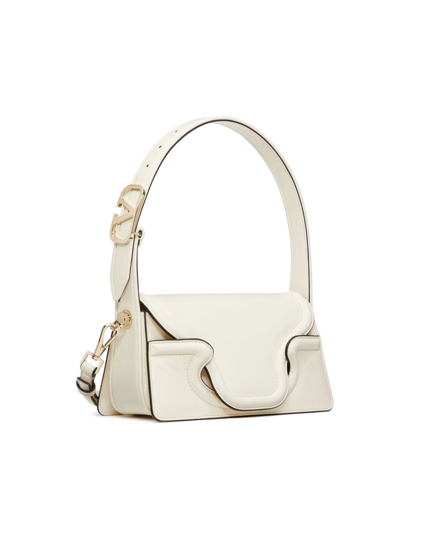 Le Petite Deuxième shoulder bag from VALENTINO GARAVANI featuring foldover top with magnetic fastening, adjustable shoulder strap, cloud white, goat skin, gold-tone logo plaque and flat top handle. DEPTH: 6.0 Centimetres HEIGHT: 14.0 Centimetres STRAP: 50.0 Centimetres WIDTH: 26.0 Centimetres