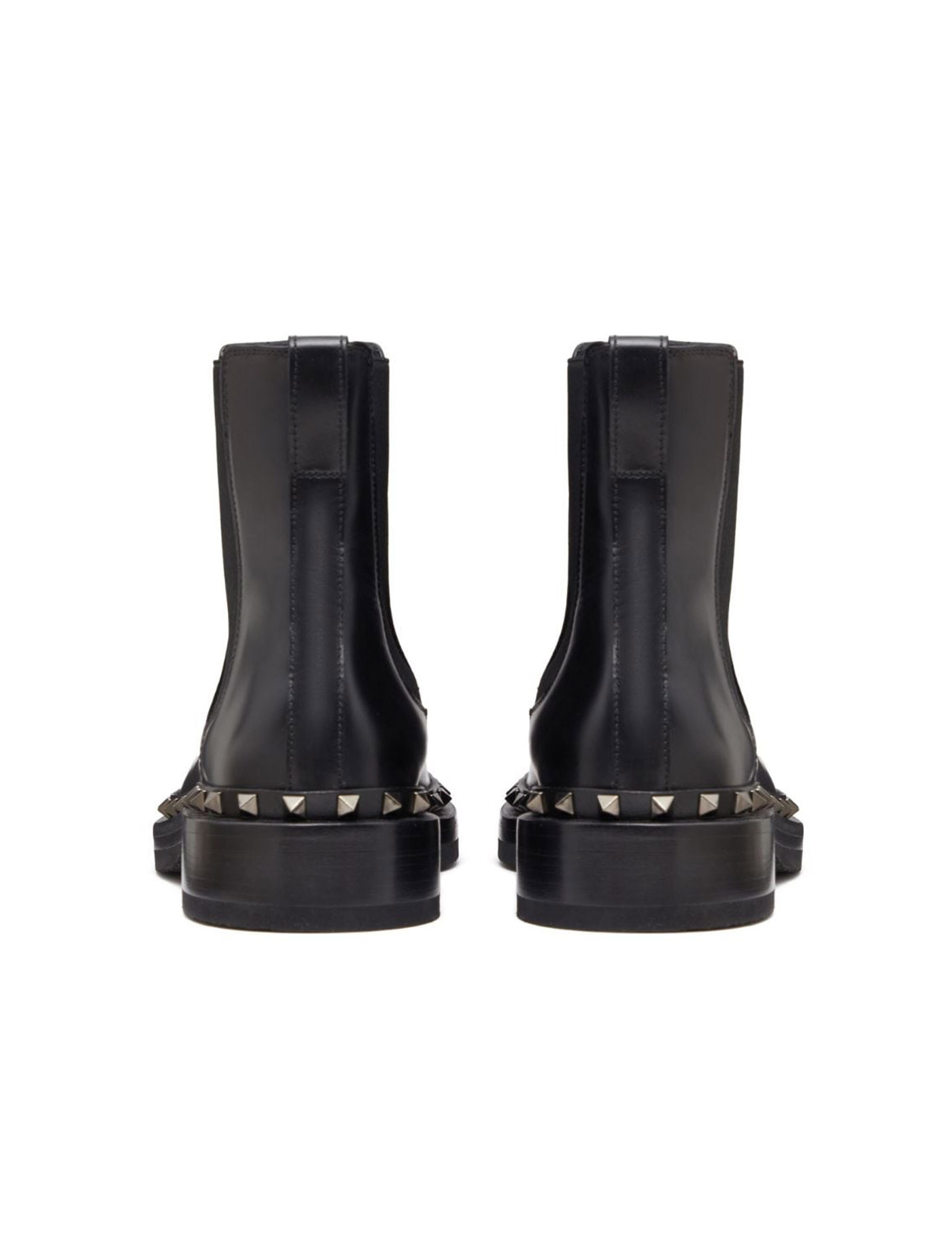 Leather ankle boots by Valentino Garavani with side elasticated insets, rear loop tab and iconic platinum-finished studs on the welt. Leather interior and rubber sole.