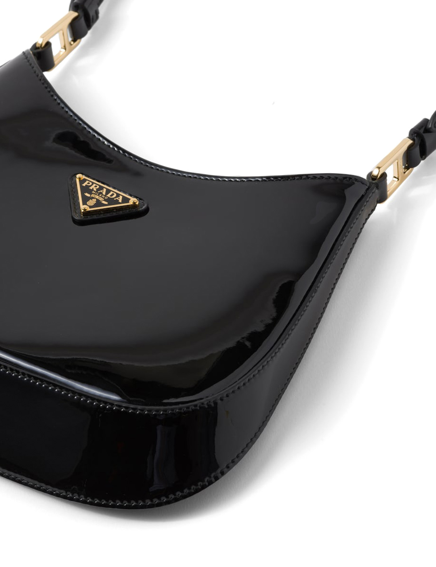 The Cleo shoulder bag from Prada sees its patent-leather construction punctuated with a signature triangular enamel logo plaque on the front. Fabricated in Italy, the compact silhouette is a modern iteration of a signature style from the label, which first debuted in the 1990s.