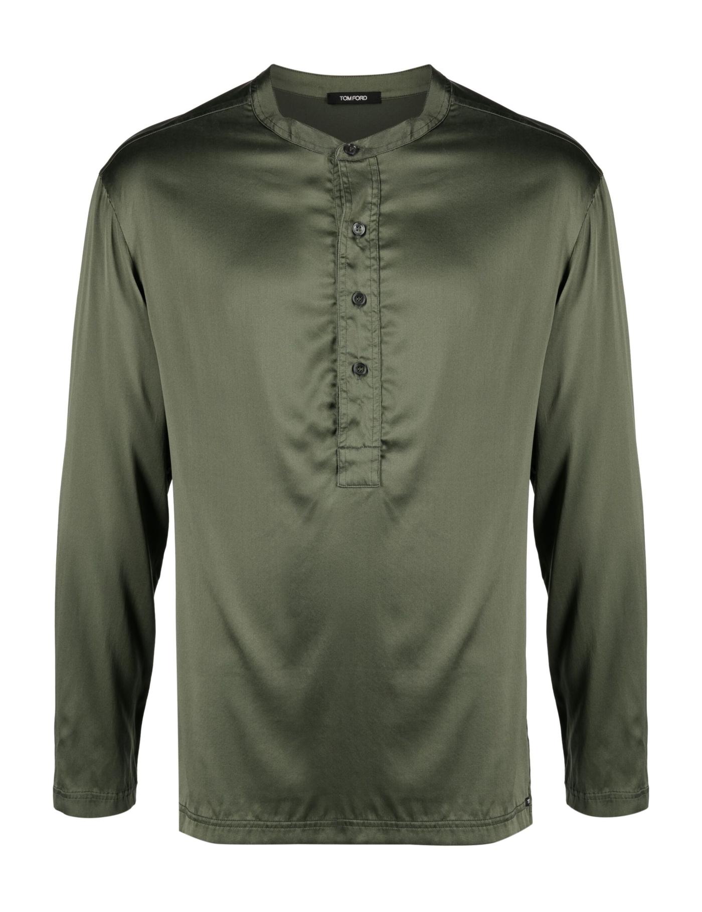 TOM FORD balances minimalism with a sense of opulence in the design of this pyjama top. It’s cut to a classic Henley silhouette from fluid green silk.
