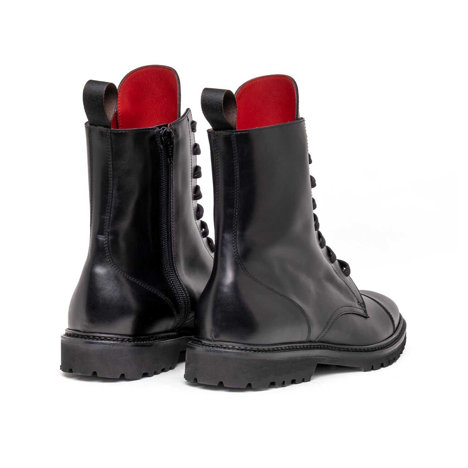Step out in style with the Alexander 1910 Off-Road Combat Boots. Made with very soft black calf leather, these boots feature a laced lacing and side zip closure. The Carmine Red calfskin lining and Vibram all-terrain midsole ensure maximum comfort and durability. Perfect for both formal and casual occasions, these boots are a must-have addition to your wardrobe. Handmade in Italy by expert craftsmen, these boots are a testament to the quality of Italian craftsmanship.