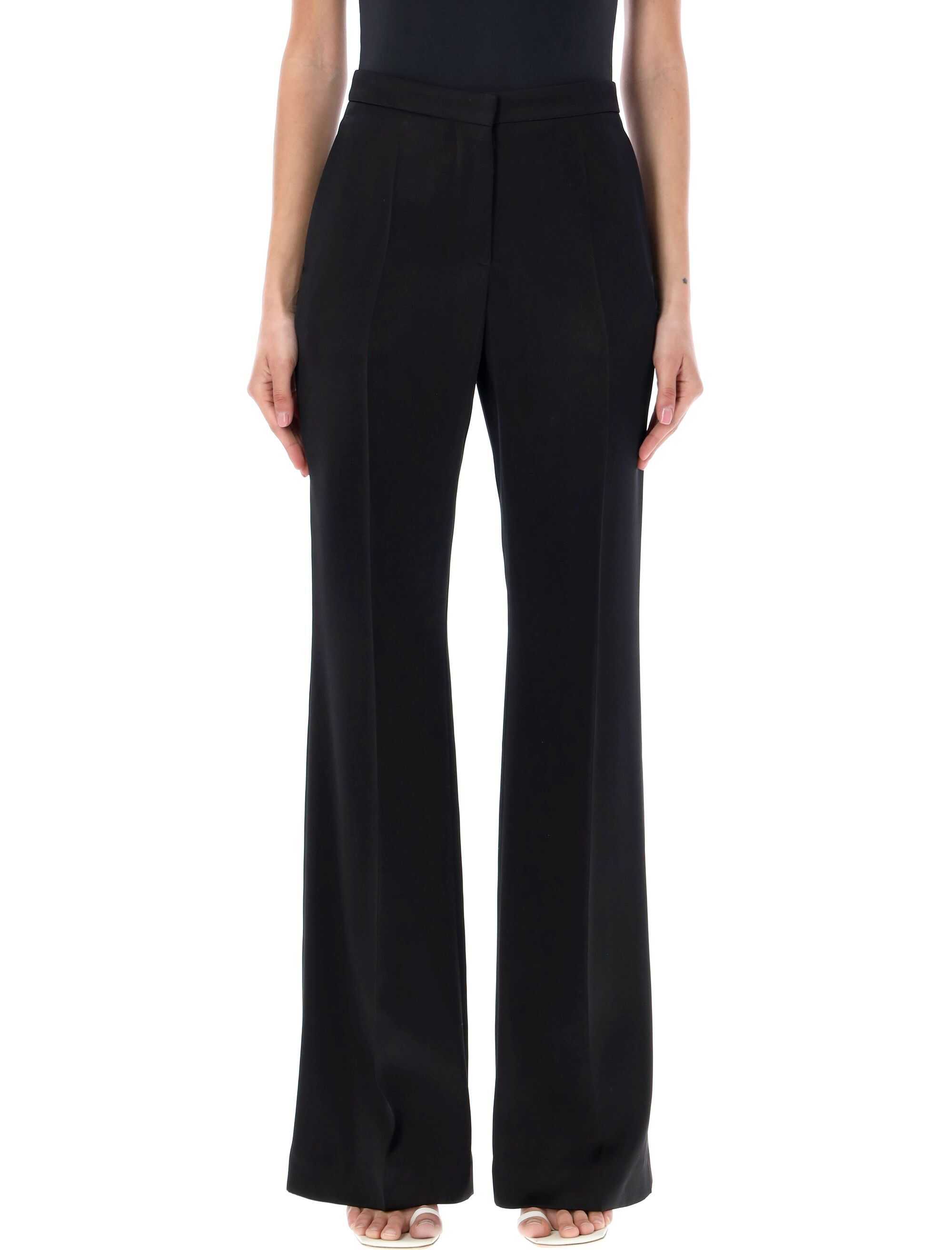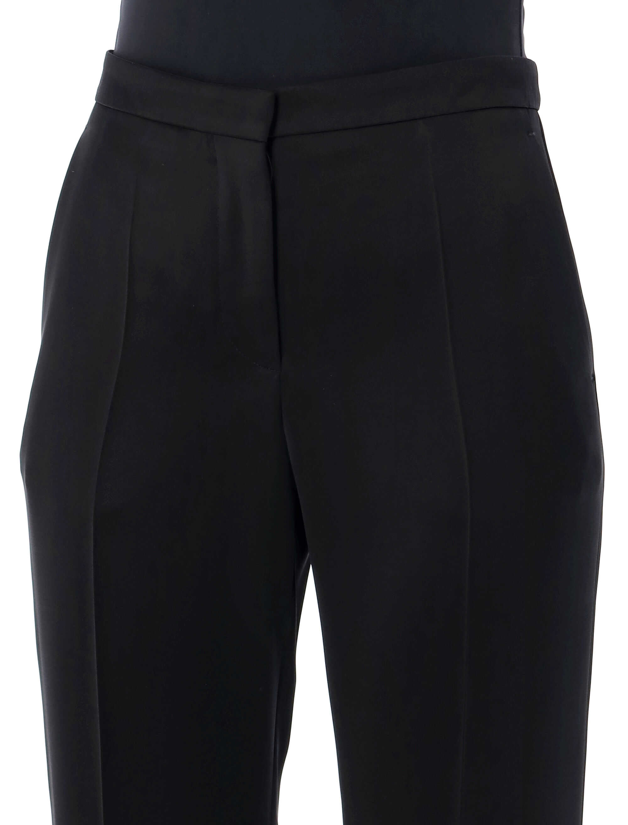 Upgrade your wardrobe with these stunning black flare tailoring pants from Givenchy. Made from 100% viscose, these tailored pants feature a regular waist, zipped closure with hook, two slant side pockets, and two back pockets. Perfect for a night out or a day at the office, these pants are sure to turn heads. Model is 1.72m tall and she is wearing size 38. Order now and experience the luxury of Givenchy!