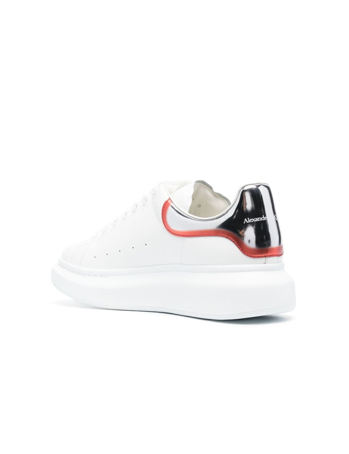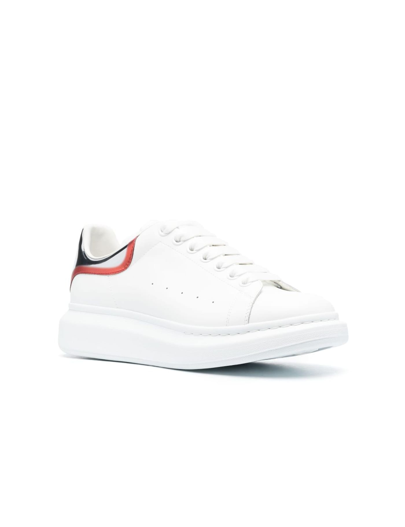 Oversized low-top sneakers from Alexander McQueen featuring white, calf leather, contrasting branded heel counter, logo-embroidered tongue, branded insole, round toe, front lace-up fastening, chunky rubber sole, interchangeable laces and perforated detailing.
