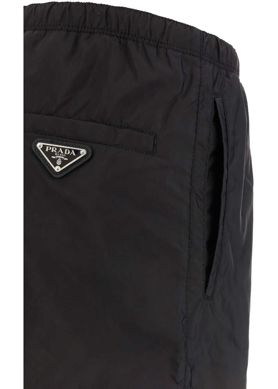 Swimshorts by Prada, elasticated waistband with drawstring, two side welt pockets, one back patch pocket, iconic triangular enamel plaque with brand signature applied.