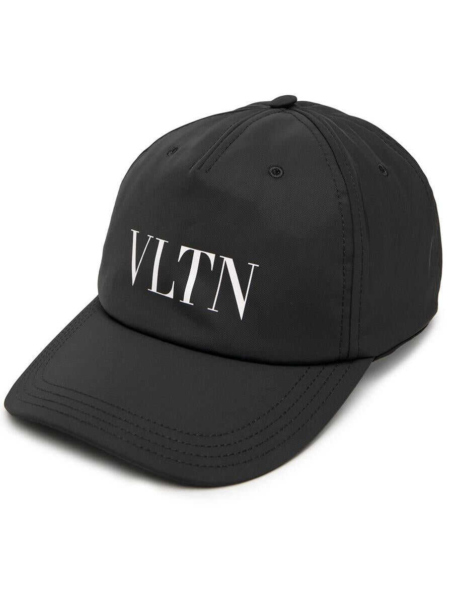 Black/white VLTN-print cap from VALENTINO GARAVANI featuring curved peak, six-panel construction, tonal stitching, eyelet detailing and adjustable rear fastening.