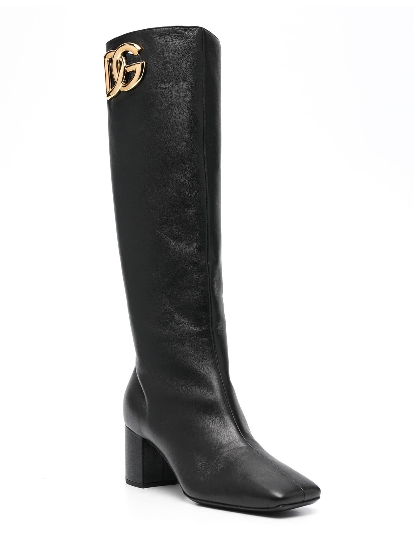 Leather boots with metal monogram