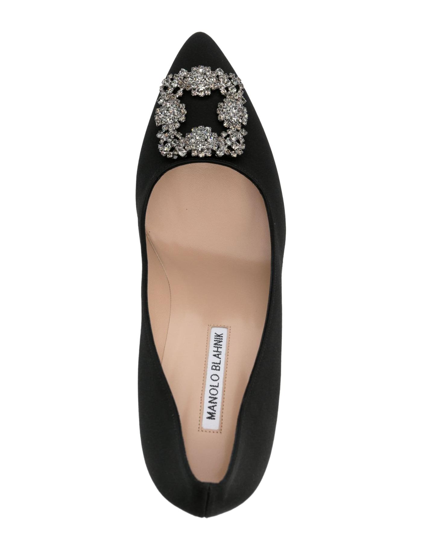 Manolo Blahnik's refined elegance is encapsulated in these Hangisi pumps. They're crafted in Italy from calf leather and wrapped in a lustrous black satin exterior, while the brand's signature jewelled buckle embellishes the front.