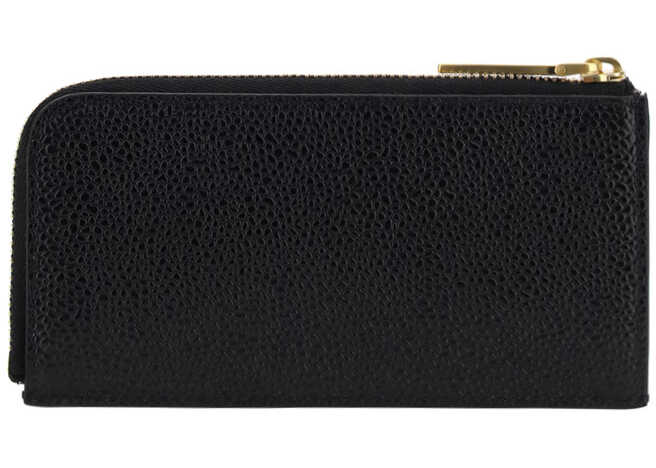 Calfskin Wallet by Thom Browne, card slot on the front, contrasting logo and label on the front, zippered coin purse, inner lining with iconic tricolor brand bands.