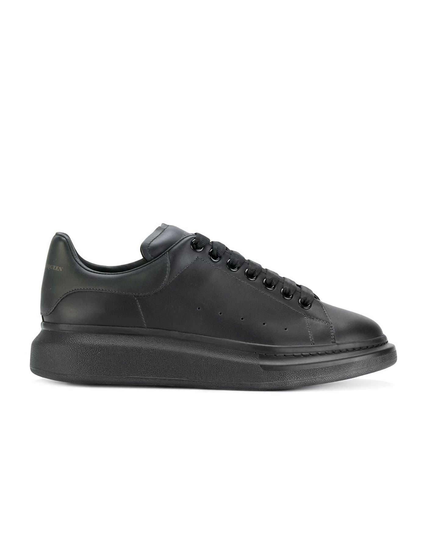 Calfskin Sneakers by Alexander McQueen, lace-up front fastening, a brand embossed tongue, a printed logo at the back, a round toe and an extended white rubber sole