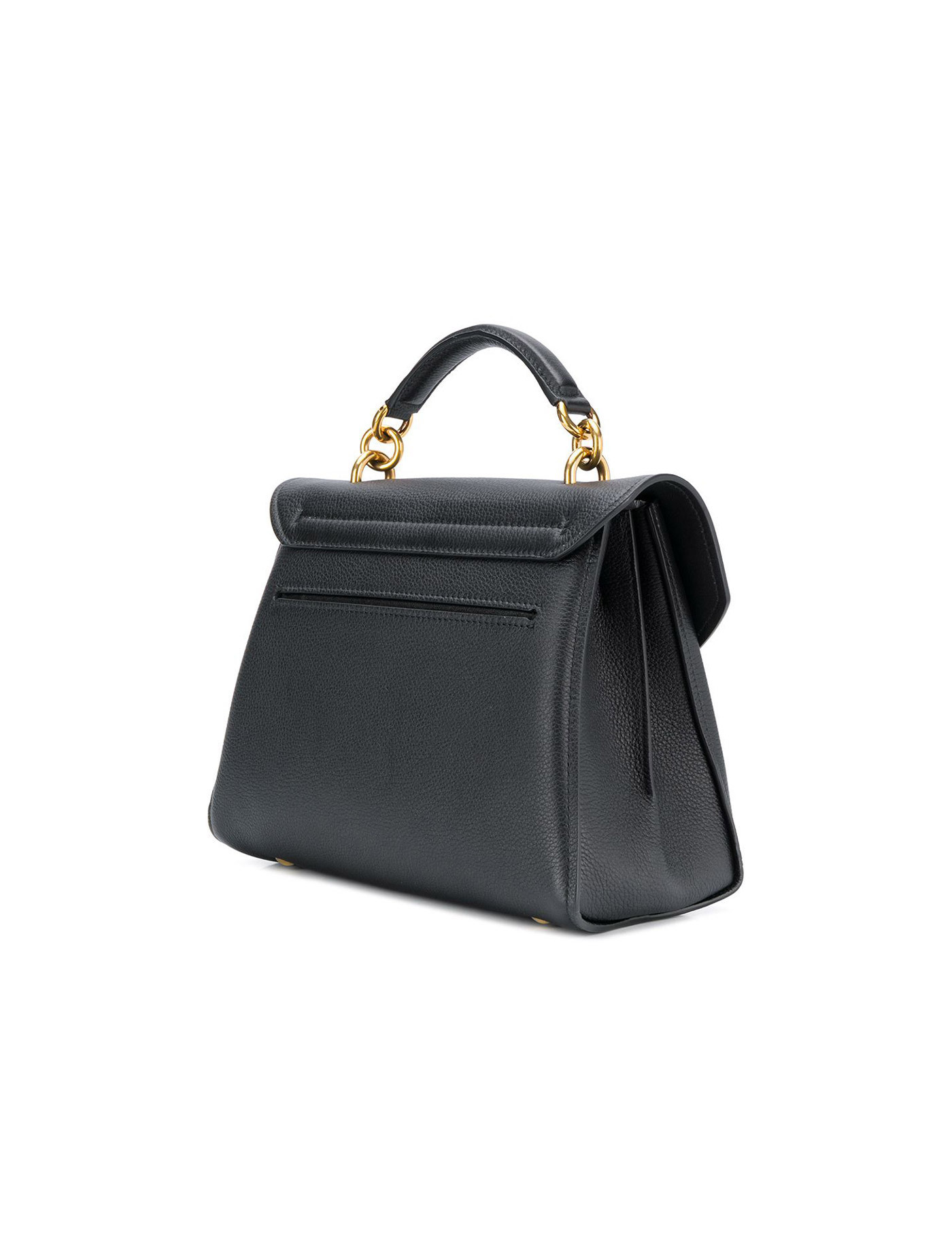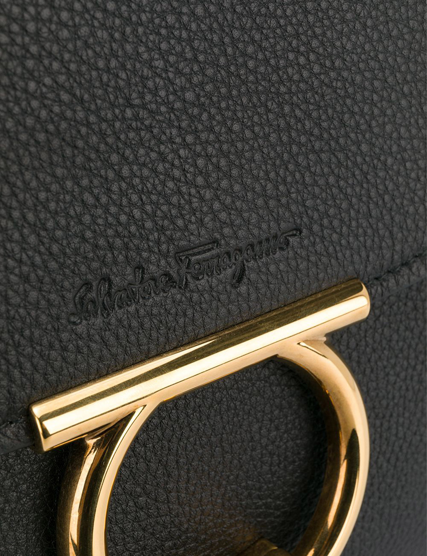 Calfskin Margot Handbag by Ferragamo, front closure by flap embellished with the brand's iconic Gancini logo, adjustable and removable shoulder strap, back slit pocket, two interior compartments, bottom feet.
