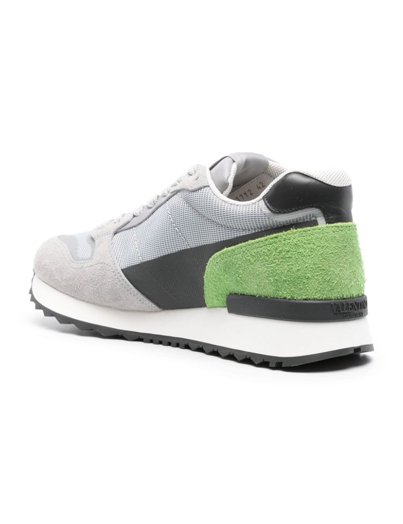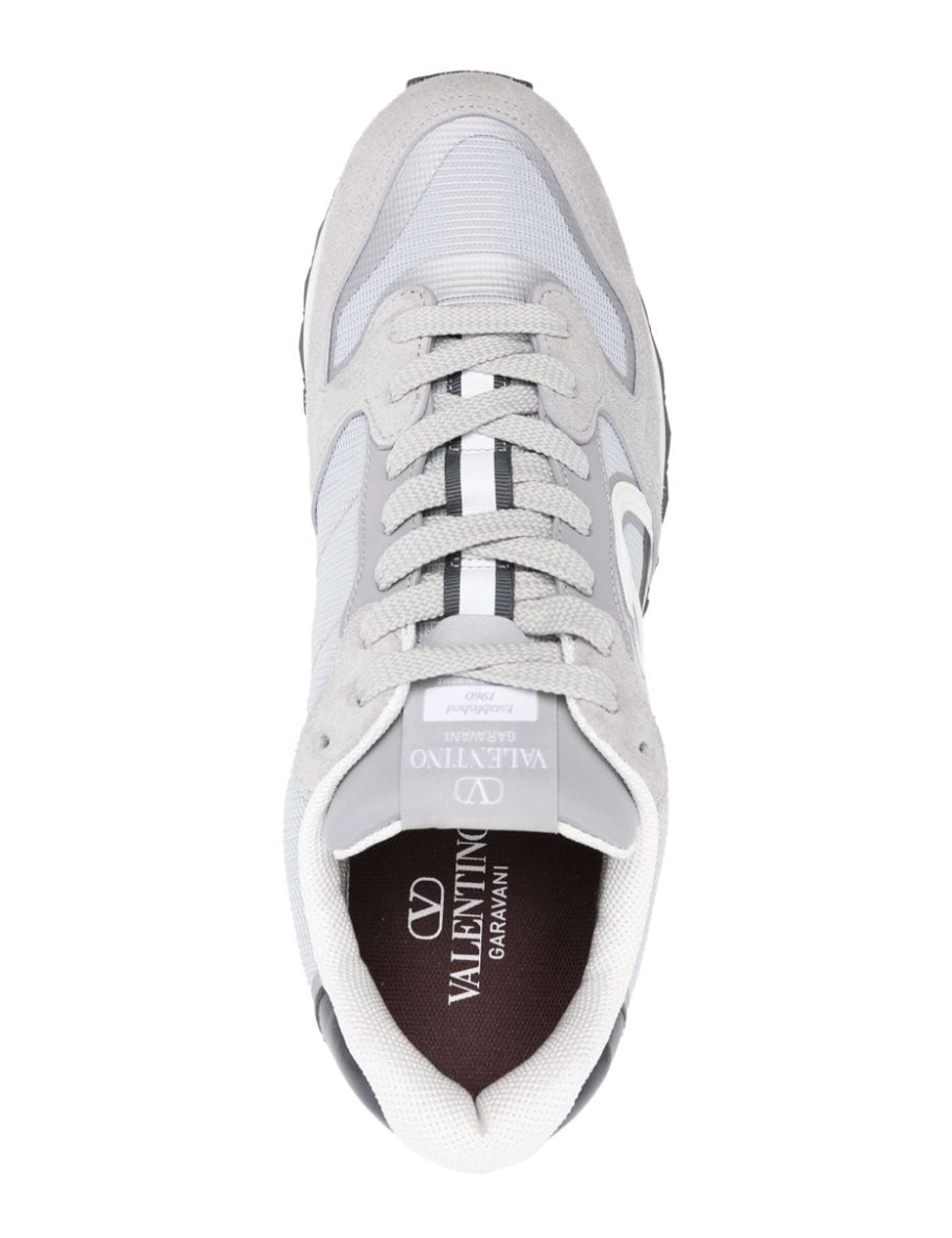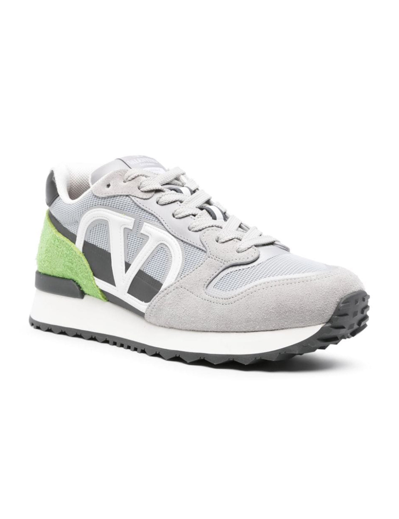 Valentino Garavani VLogo Pace low-top sneaker in split leather, fabric and calfskin with VLogo Signature leather detail. They feature lace-up closure, Valentino Garavani label "Established in 1960 - designed in Roma" on the tongue and rubber sole with stud detail.