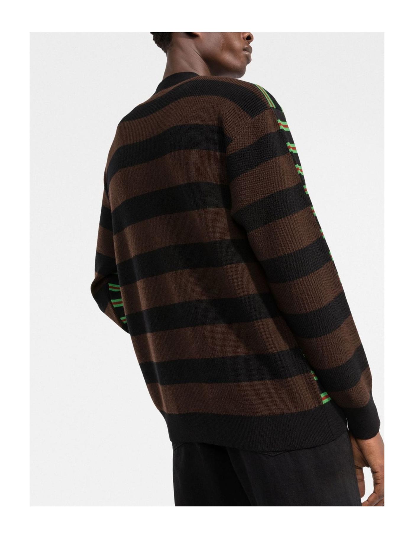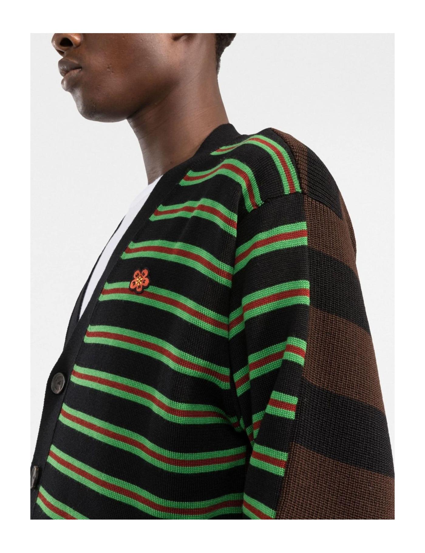 Bringing together two garments in one, this Kenzo cardigan is decorated with two stripe patterns to the front and rear. The colourful design is crafted in a wool-cotton blend and delicately embroidered with a flower at the chest.