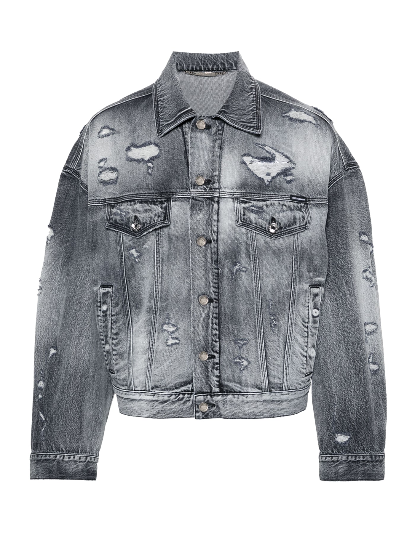 Denim jacket with ripped effect