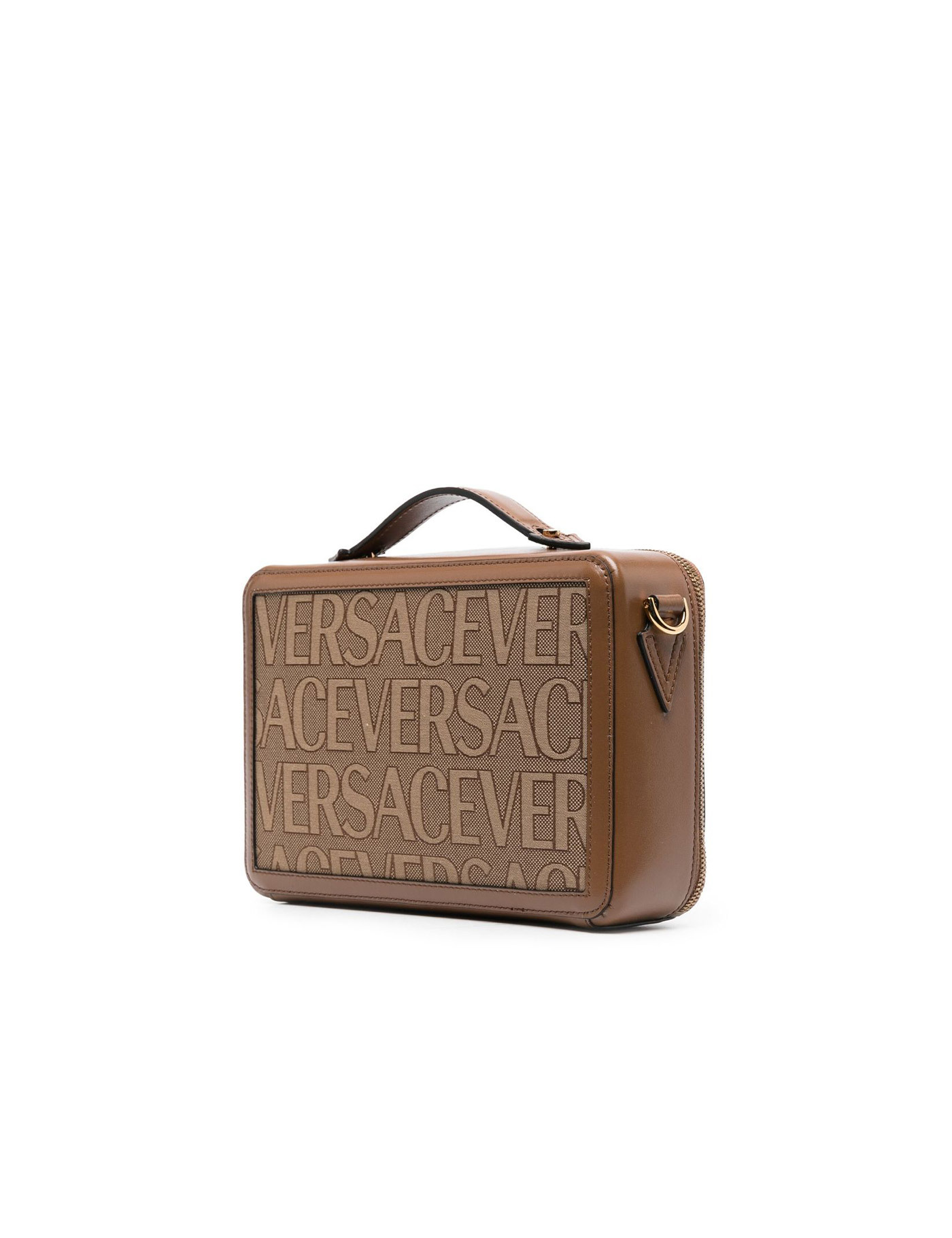 All-over logo printed canvas item with leather trimming