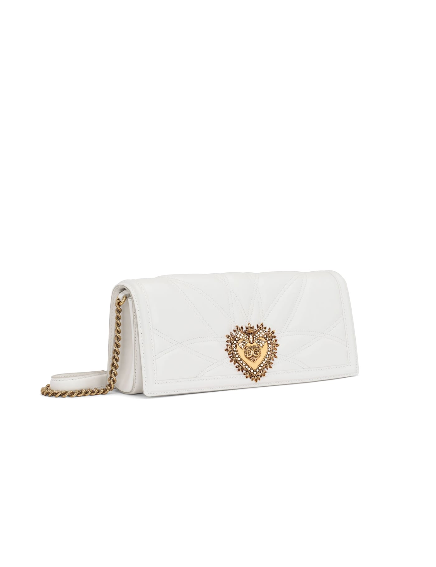 Dolce & Gabbana Quilted Nappa Leather Devotion Baguette geanta plic alba