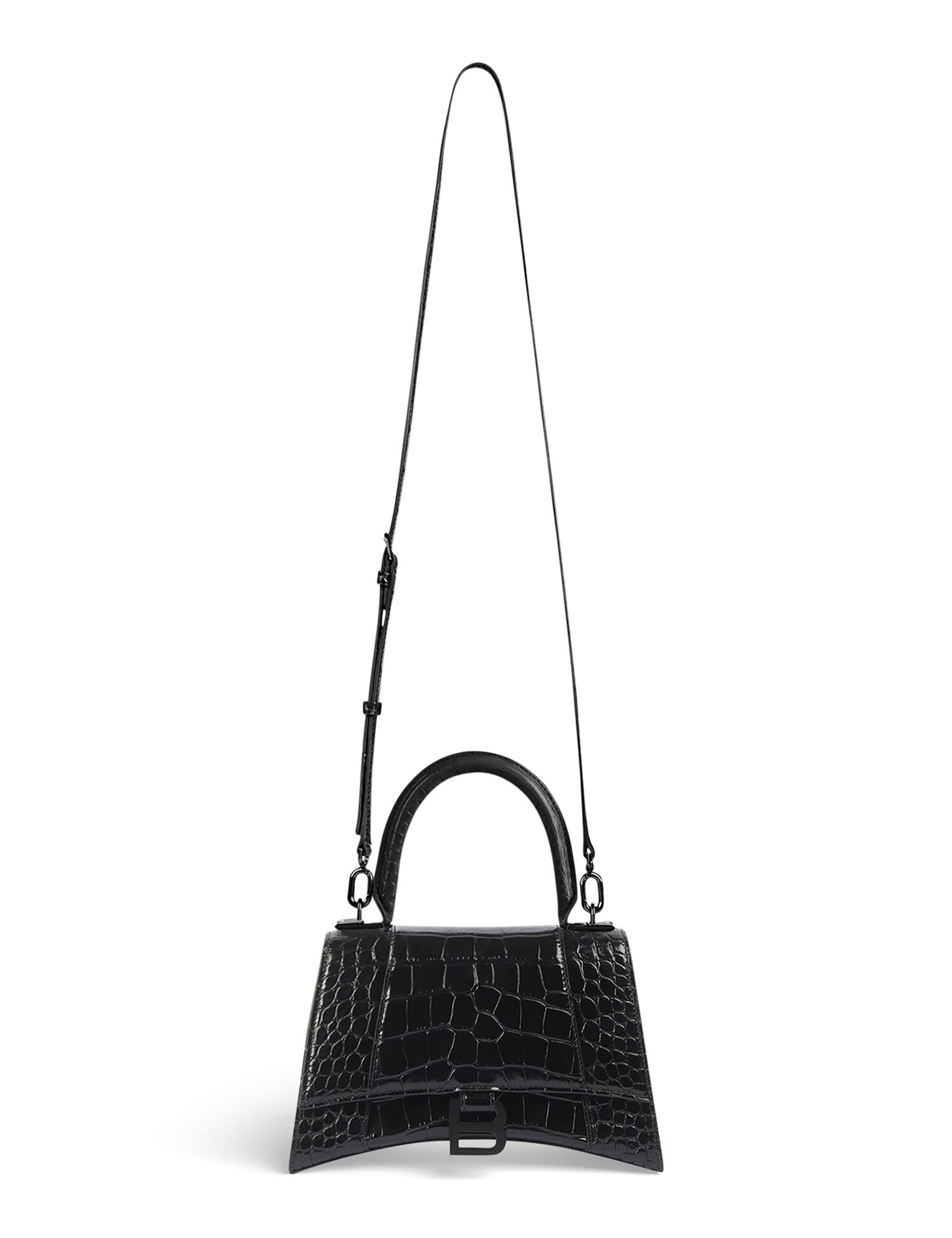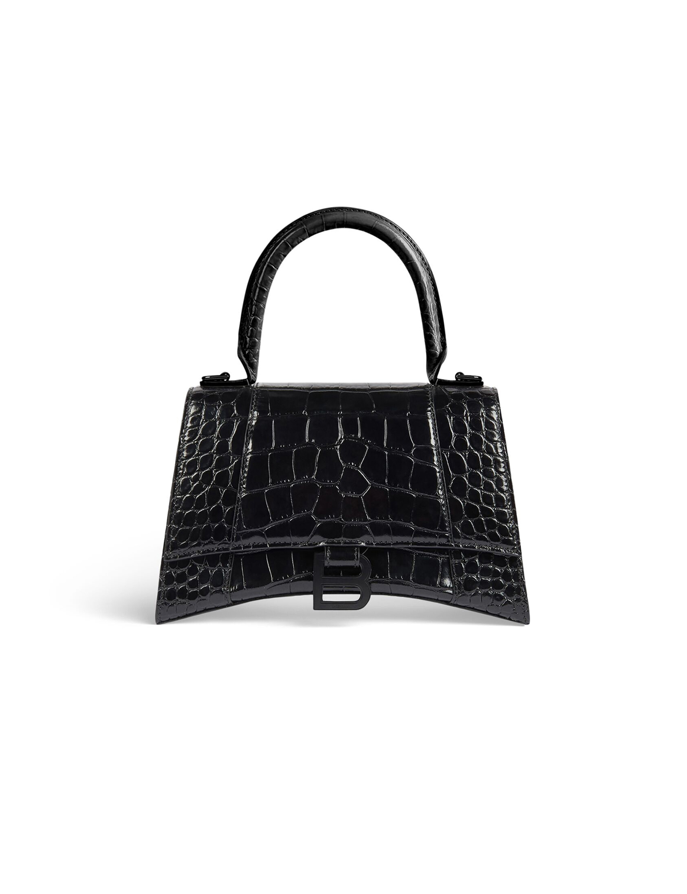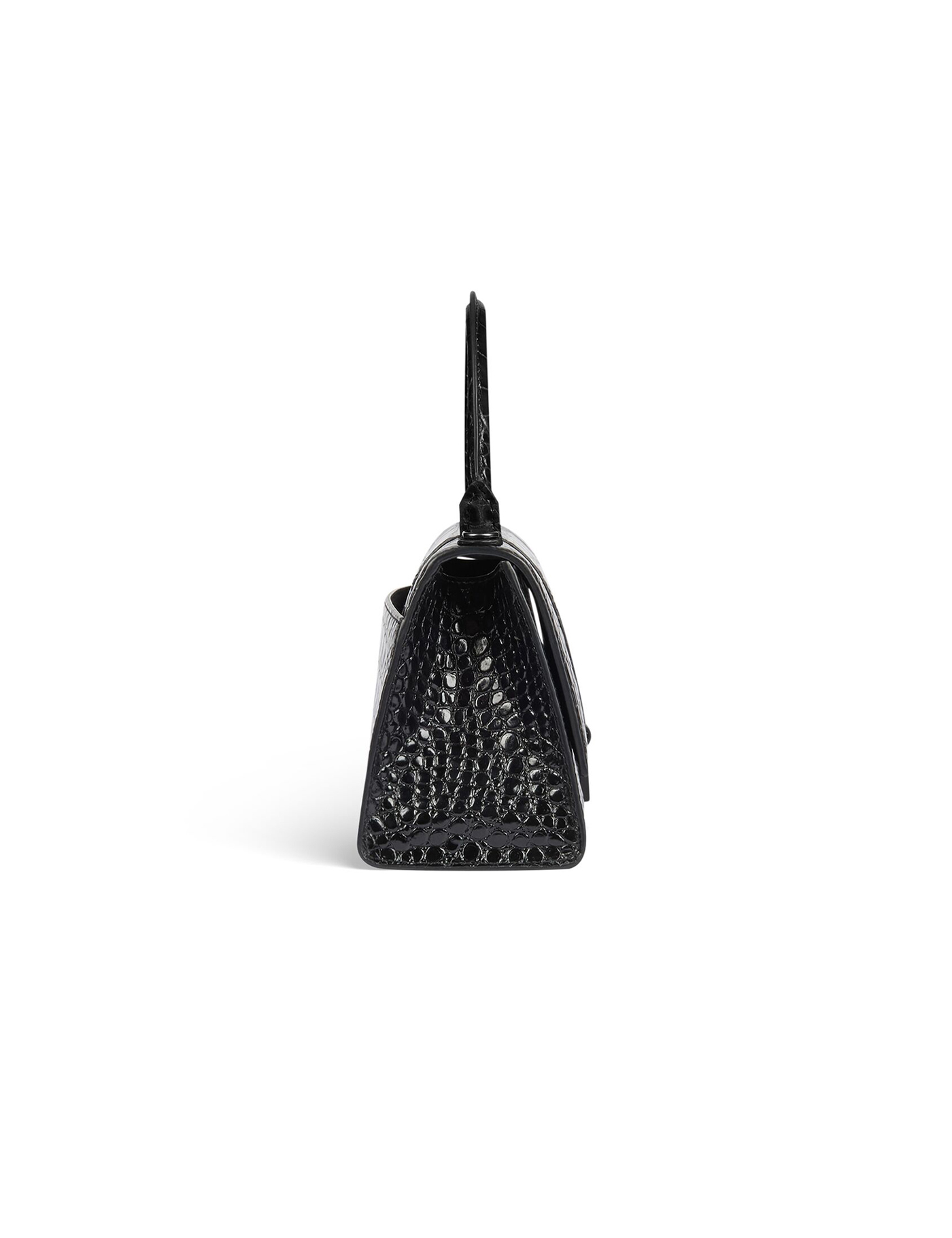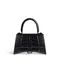 BALENCIAGA Women Hourglass shiny crocodile embossed small geanta de mana neagra