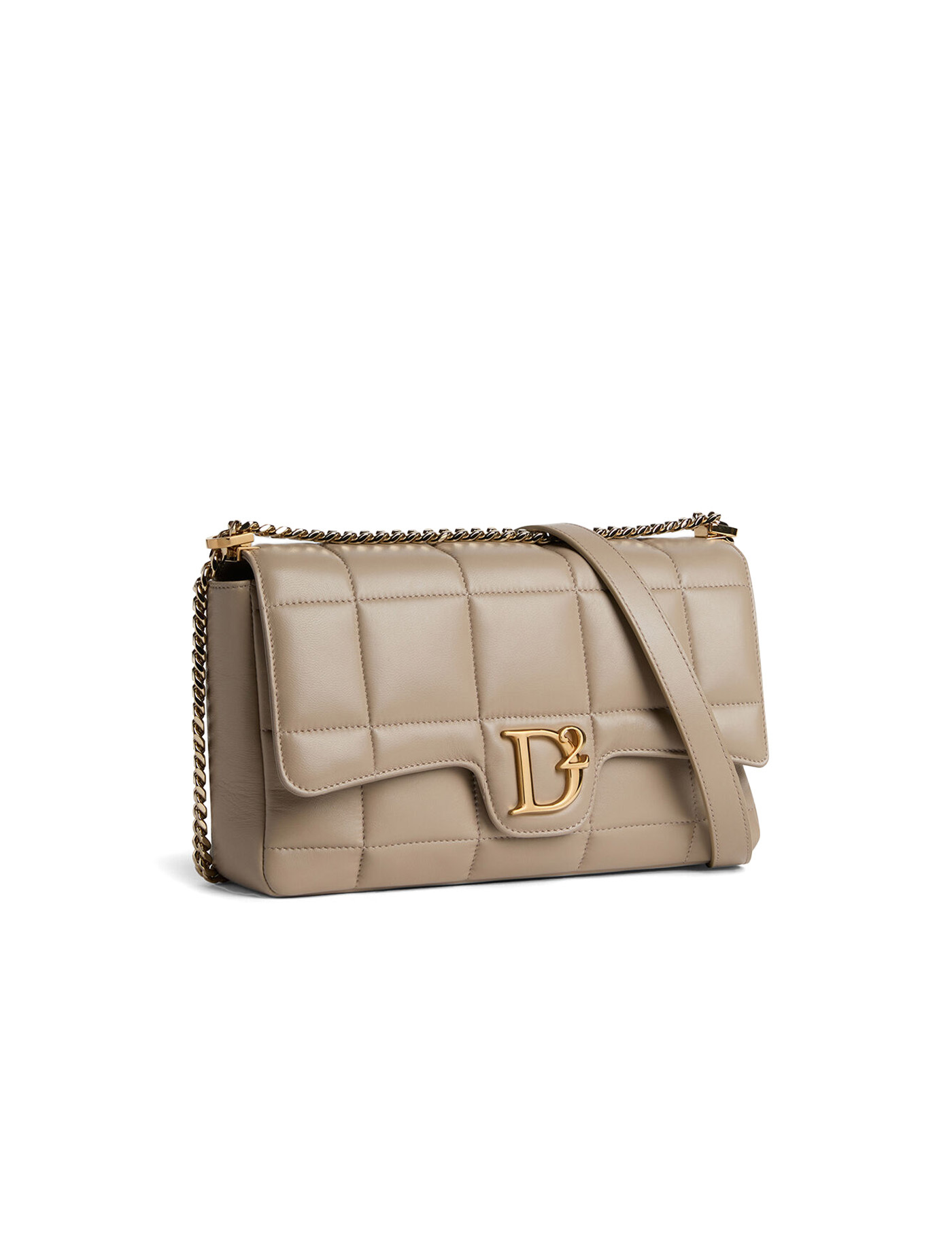 Dsqaured2 mette in risalto il suo design riconoscitivo attraverso questa borsa in pelle. Foldover top. Magnetic fastening. Main compartment. Internal zip fastening pocket. Logo plaque to the front. Leather and chain-link shoulder strap. Quilted. Gold-tone hardware. Color: beige