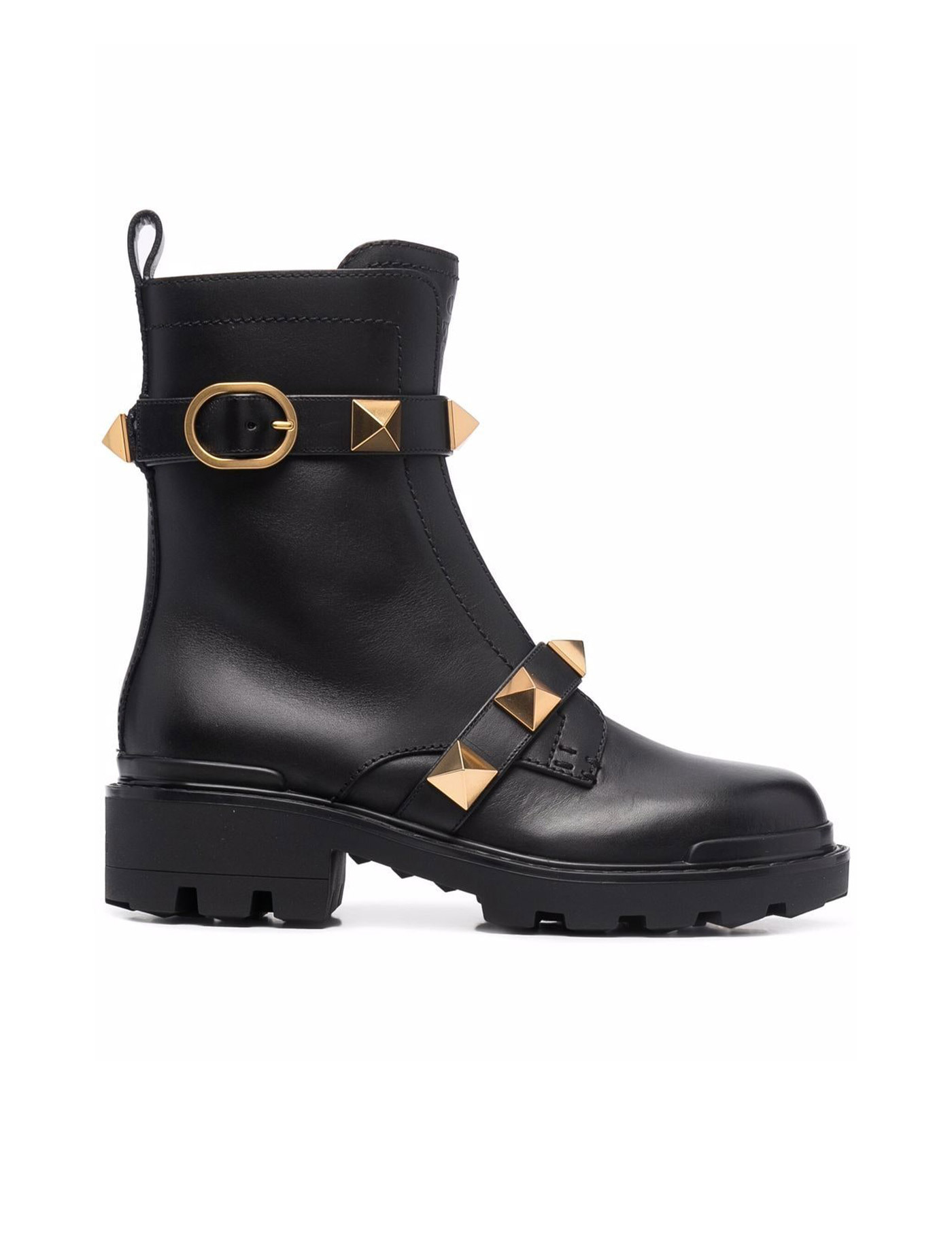 Black leather Roman Stud ankle boots