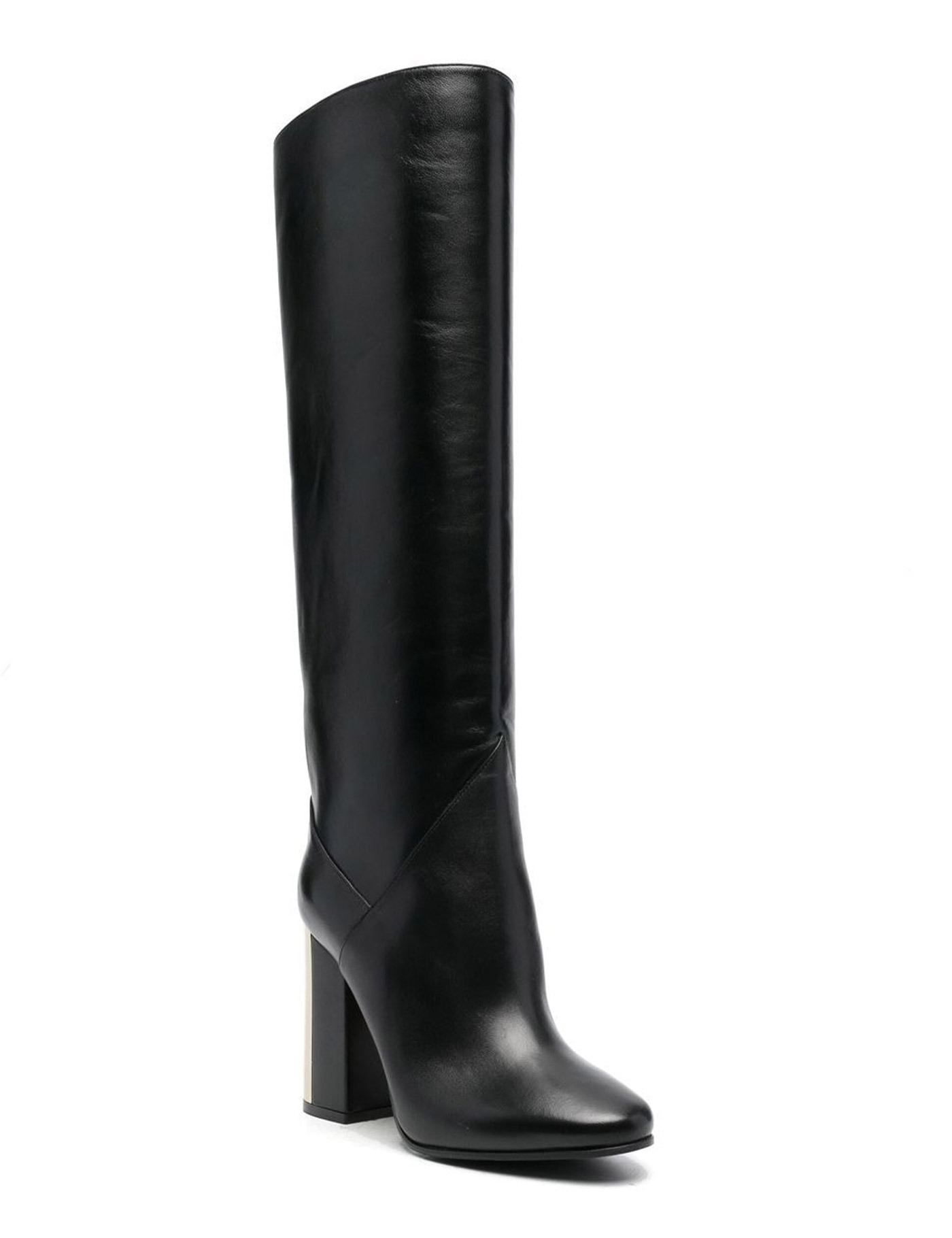 Knee-high Rydea 10 boots in black nappa with leather and gold heel. Embossed JC logo at the back of the heel.