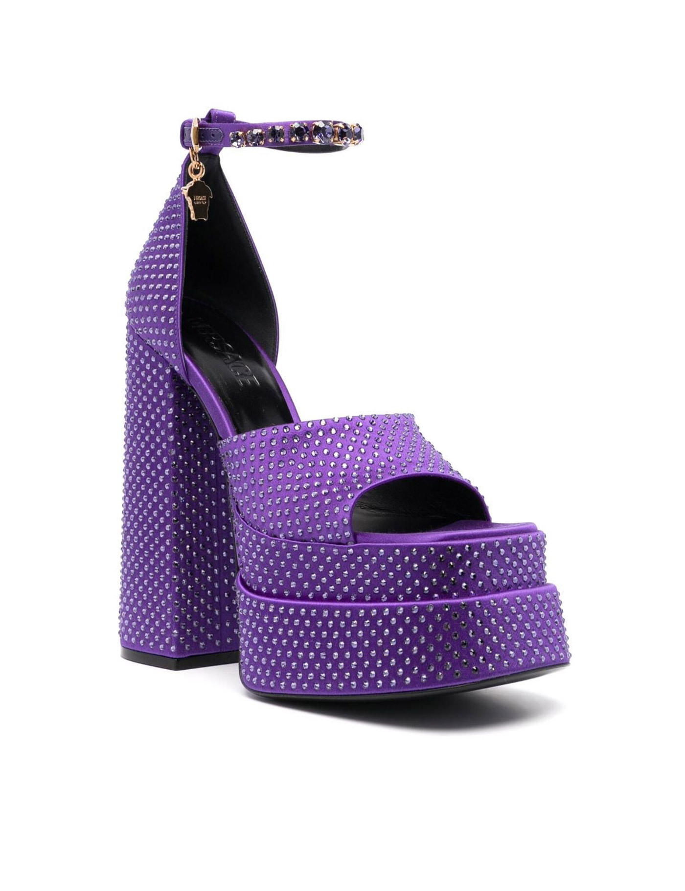 Purple satin Medusa Aevitas sandals Heel height: 16 cm Platform: 6 cm