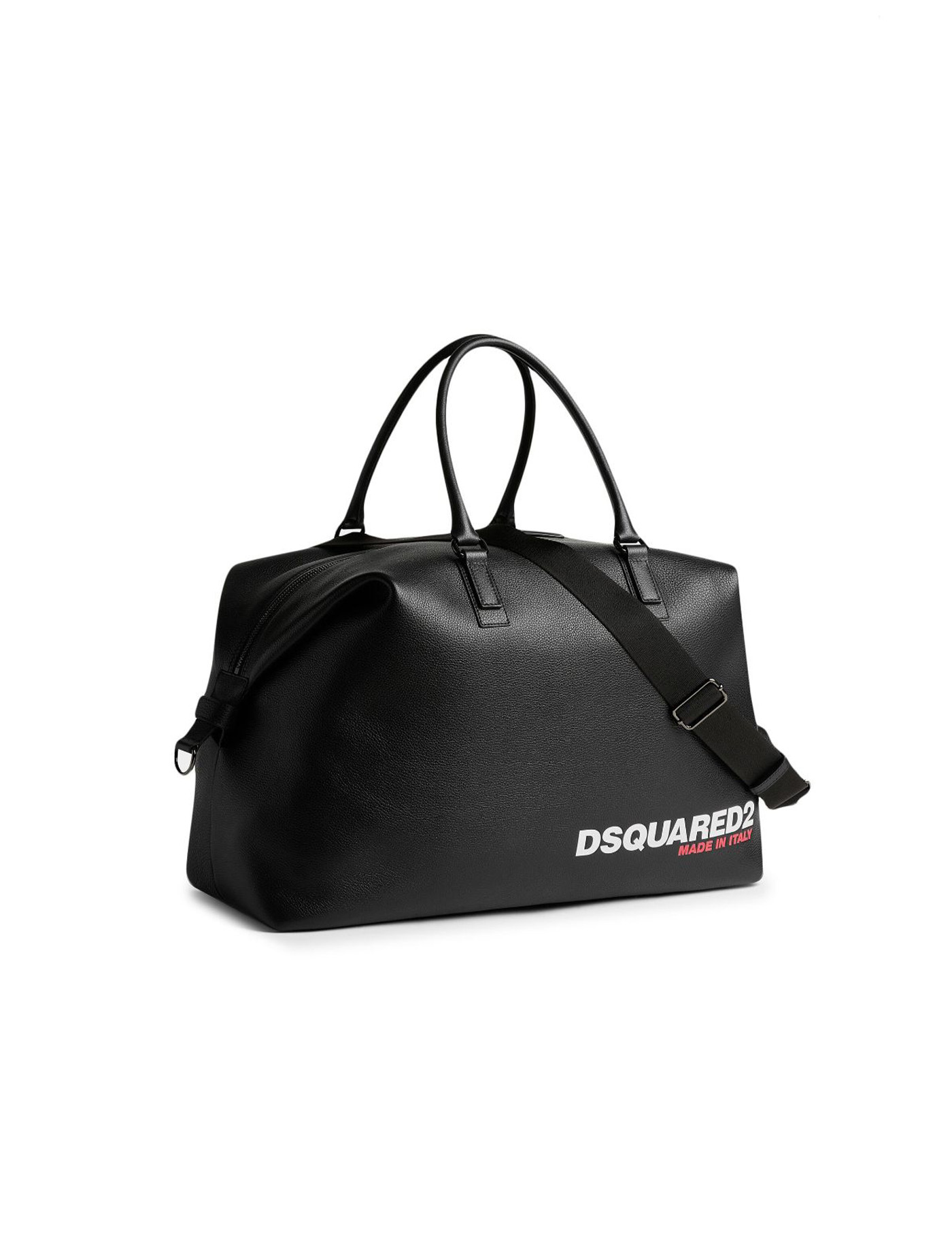 logo-print grained tote bag from DSQUARED2 featuring black, cotton, calf leather, grained texture, logo print to the front, top zip fastening, two rolled top handles, adjustable detachable shoulder strap, main compartment and internal zip-fastening pocket.