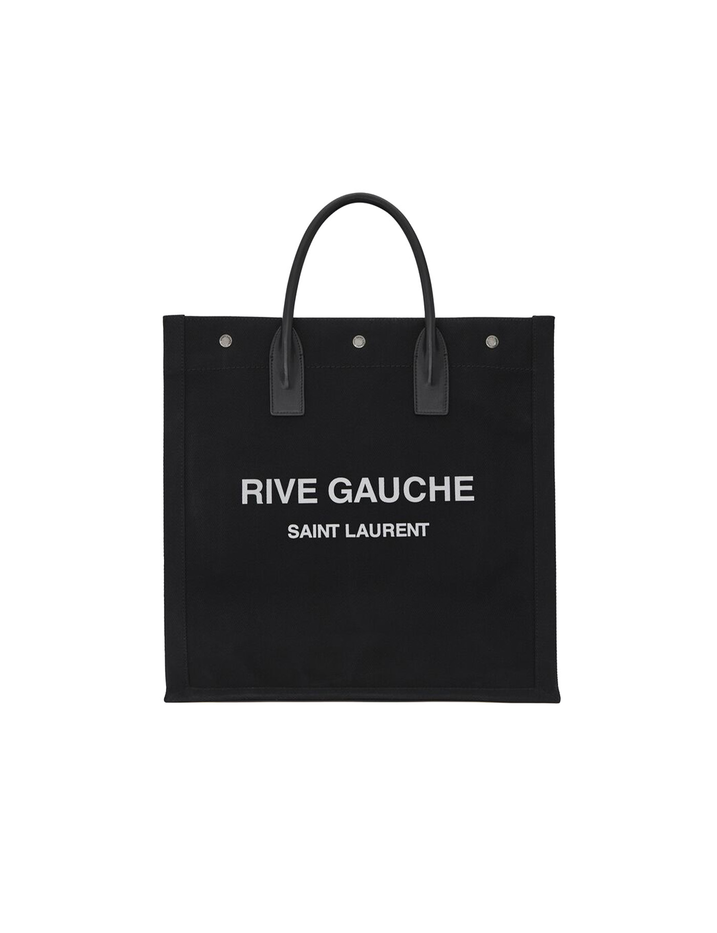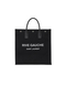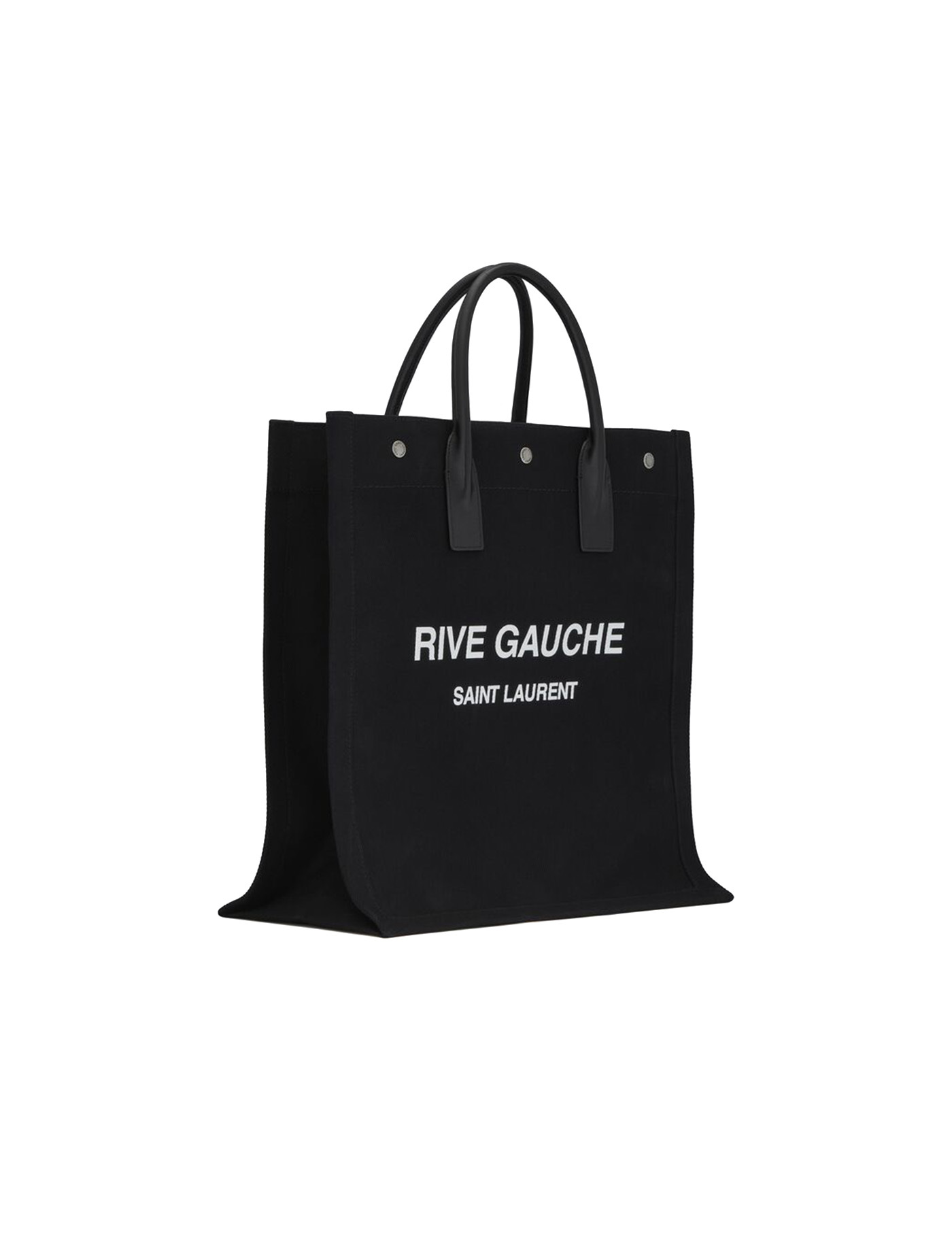 logo-print tote bag from SAINT LAURENT featuring black, cotton, logo print to the front, main compartment and two top handles.